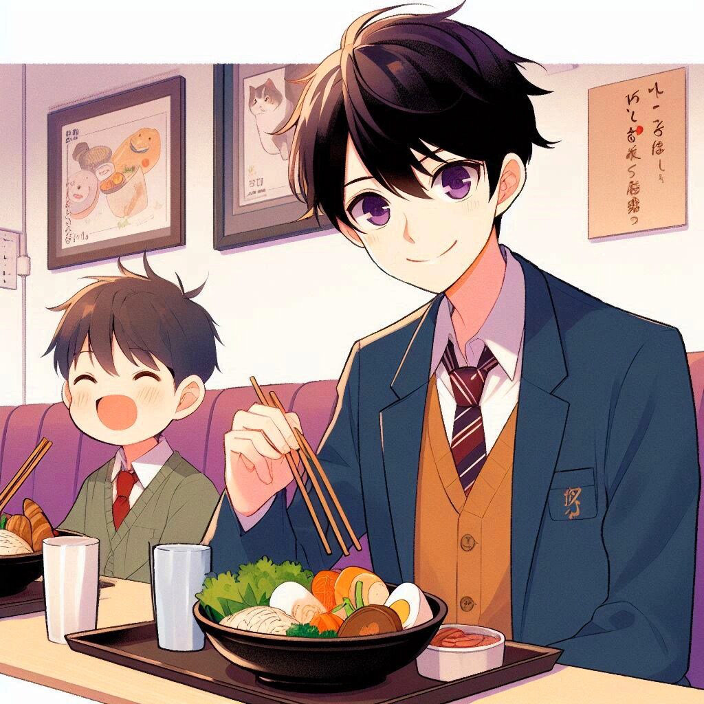 お子様ランチと、黒髪短髪男性♪その1-2(8枚)