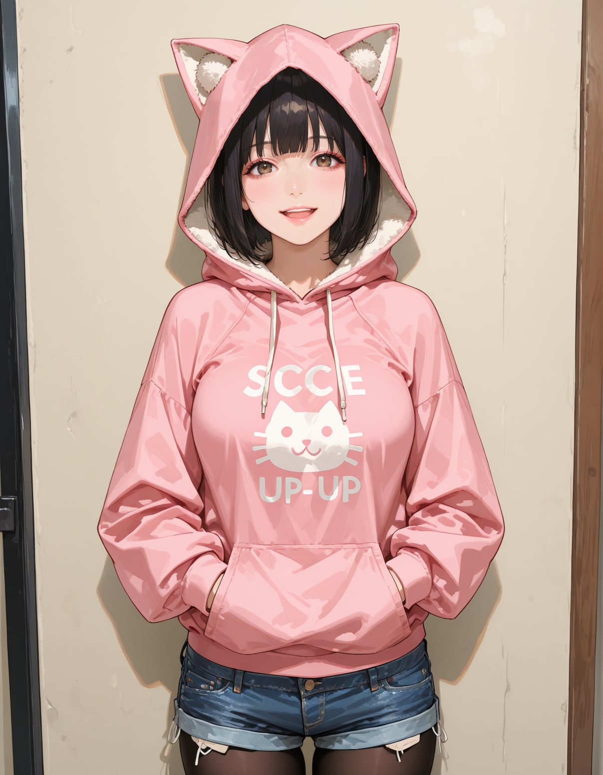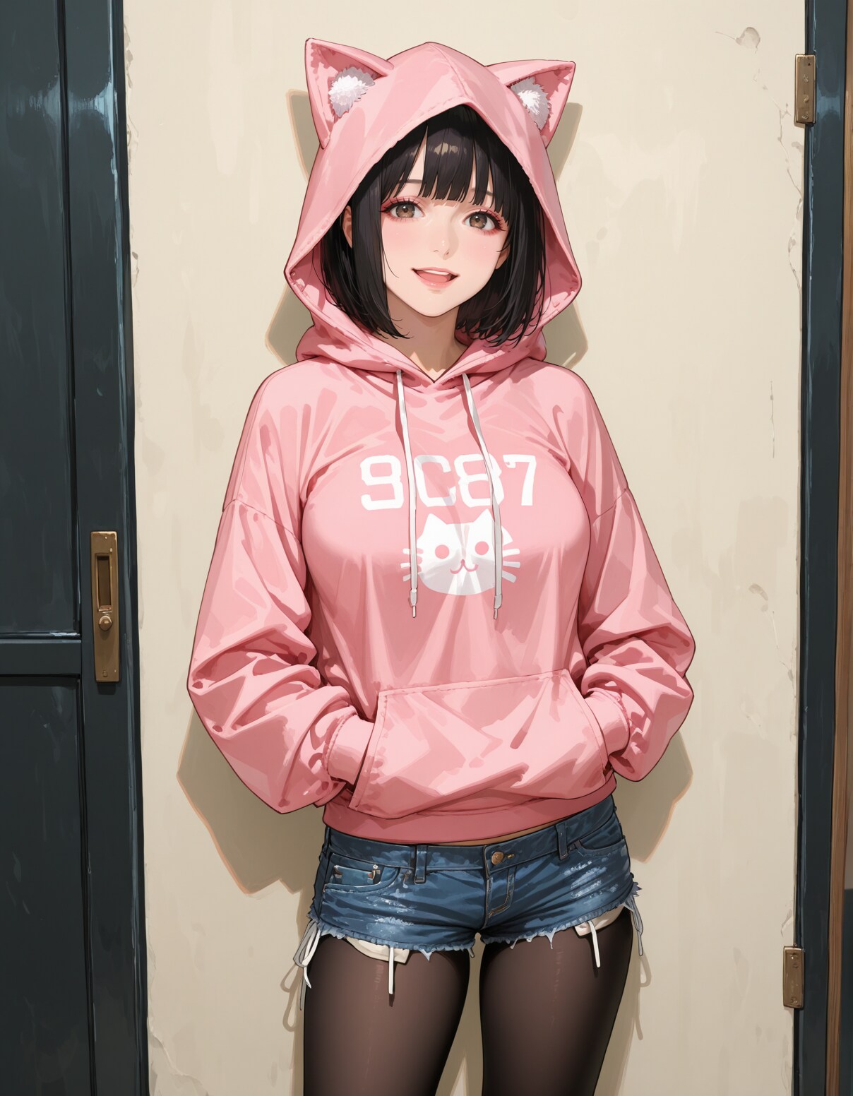 猫耳パーカーにショートパンツで暖かくて可愛い恰好してもらいました✨