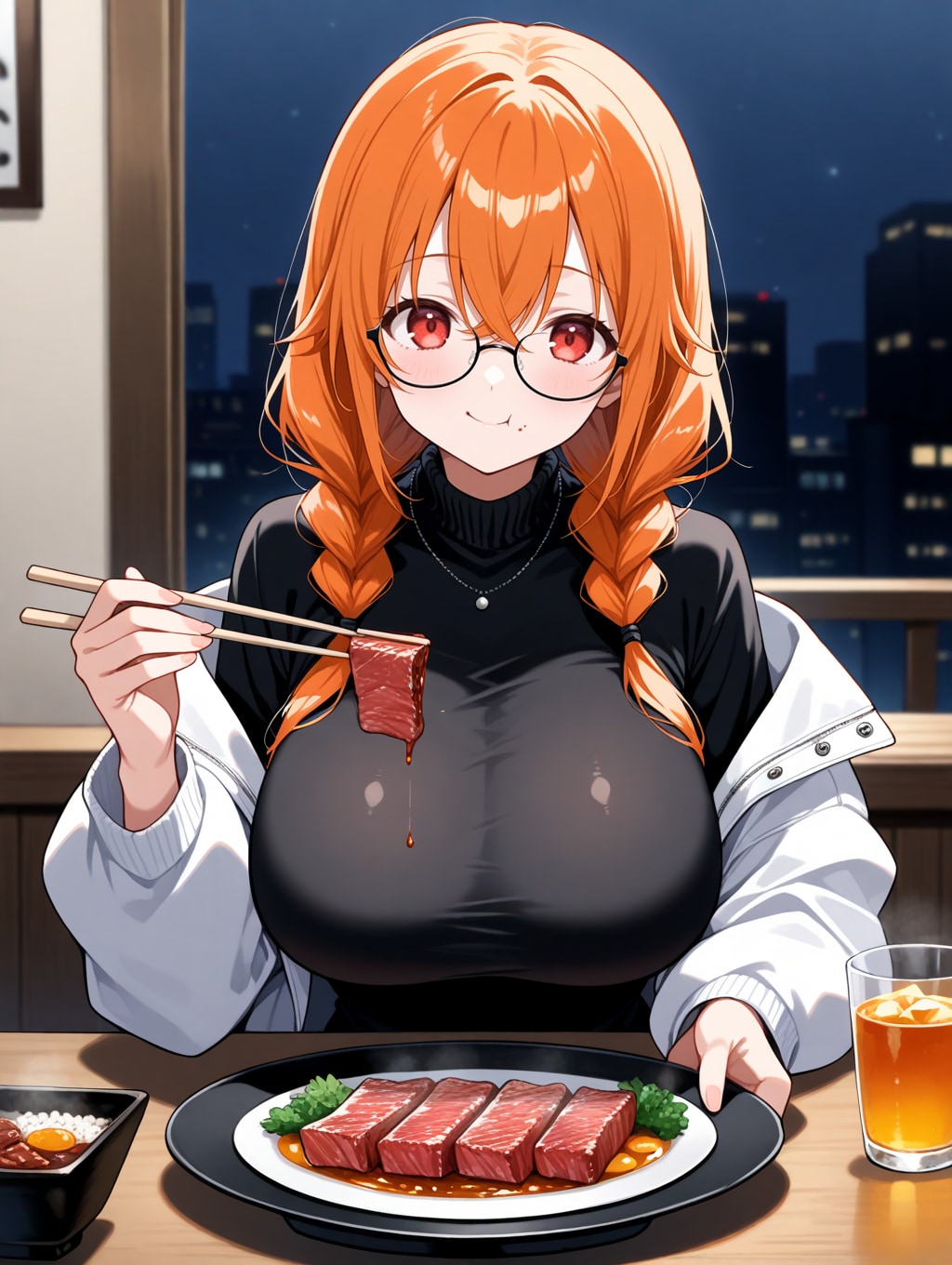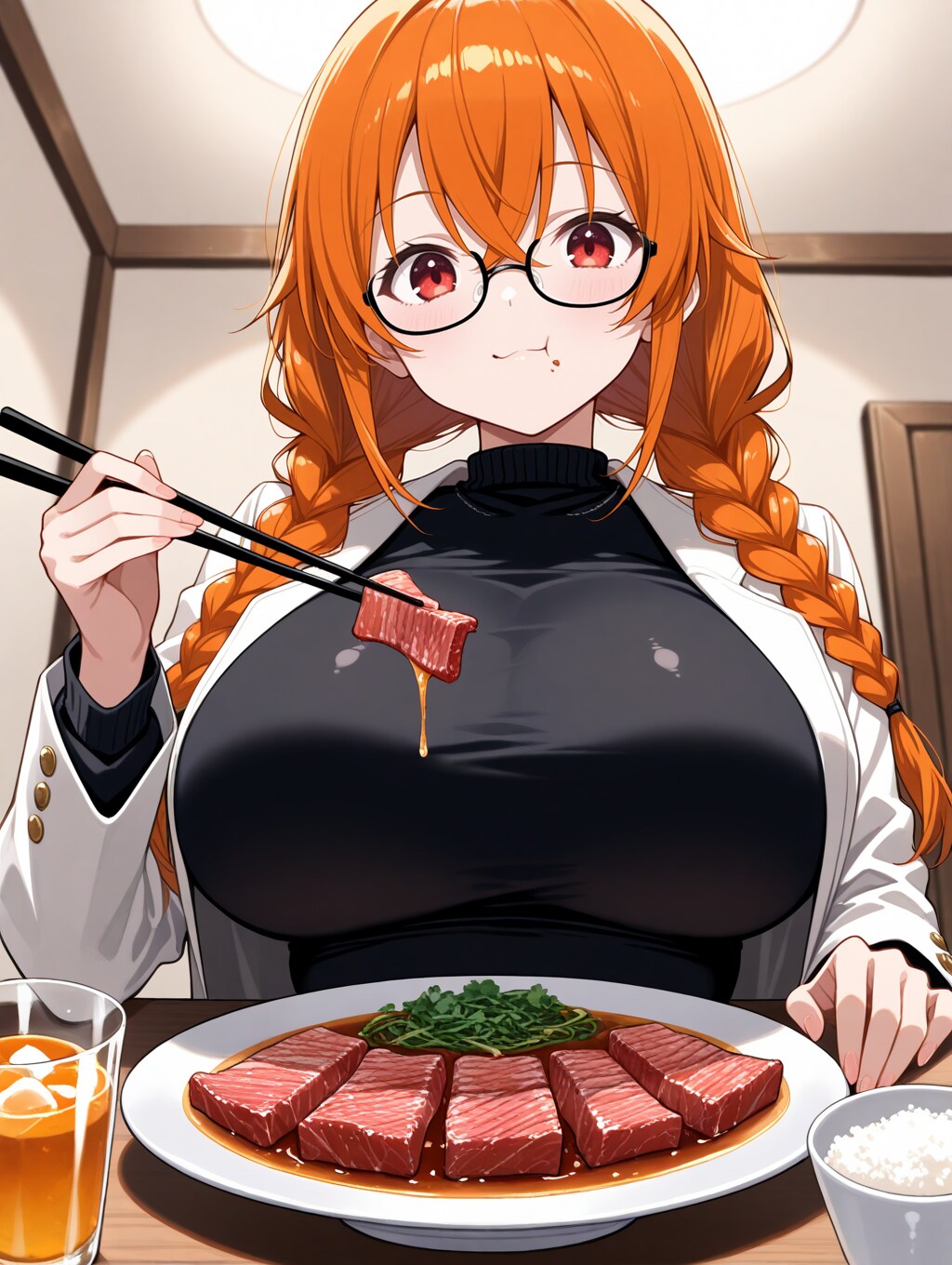 普段食べたことのない肉の美味しさに舌鼓を打つ真菜。