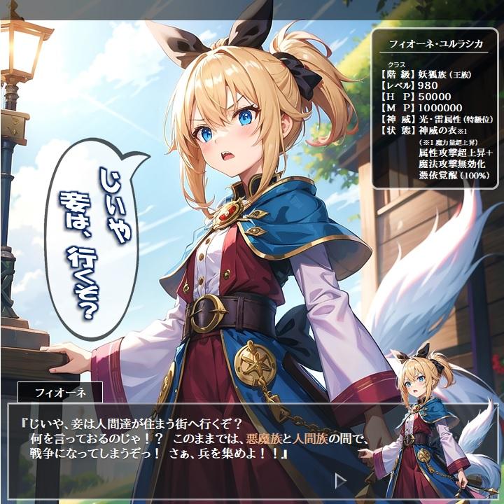 「じいや、妾(わらわ)は人間達が住まう街へ行くぞ? 何を言っておるのじゃ!? このままでは、悪魔族と人間族の間で、 戦争になってしまうぞっ! さぁ、兵を集めよ!!」