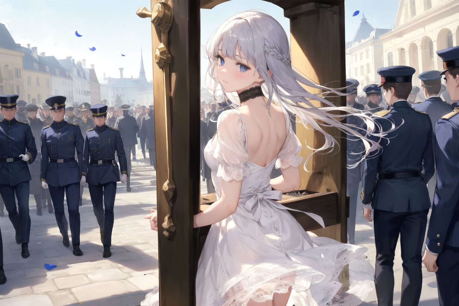 処刑台の前に立つ少女の喉元には、黒いチョーカーが巻かれている。