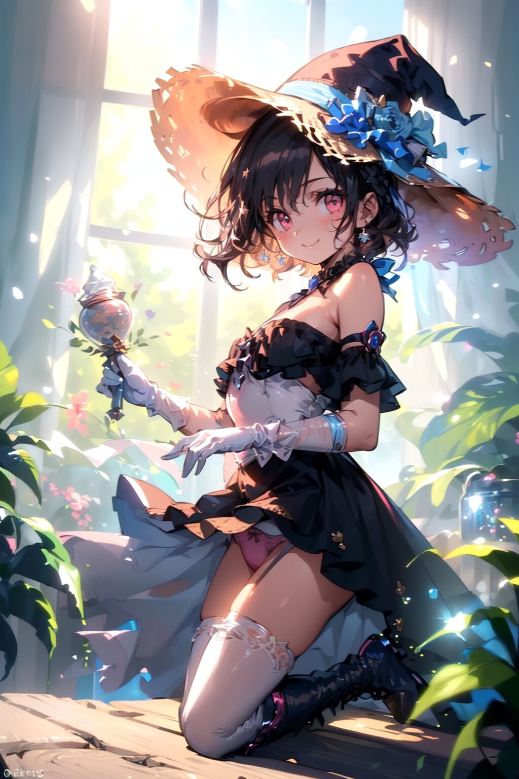 室内で植物を育てる魔女