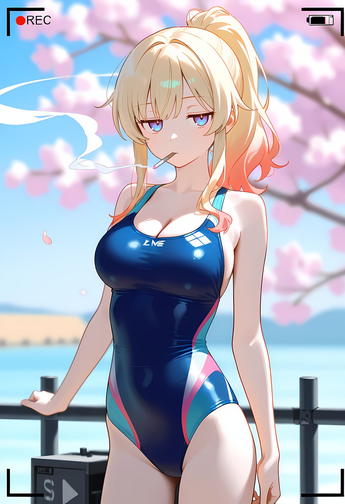 jacket partially removed, heart in eye, burnt clothes, holding fishing rod, kanji, doujin cover, pentagram, tape gag, adjusting headwear, red socks, friends, cloud print, coke-bottle glasses, oral invitation, competition school swimsuit, barbell piercing, gradient legwear, prisoner, blood on breasts, wind chime, carrying over shoulder, tape measure, flaming weapon