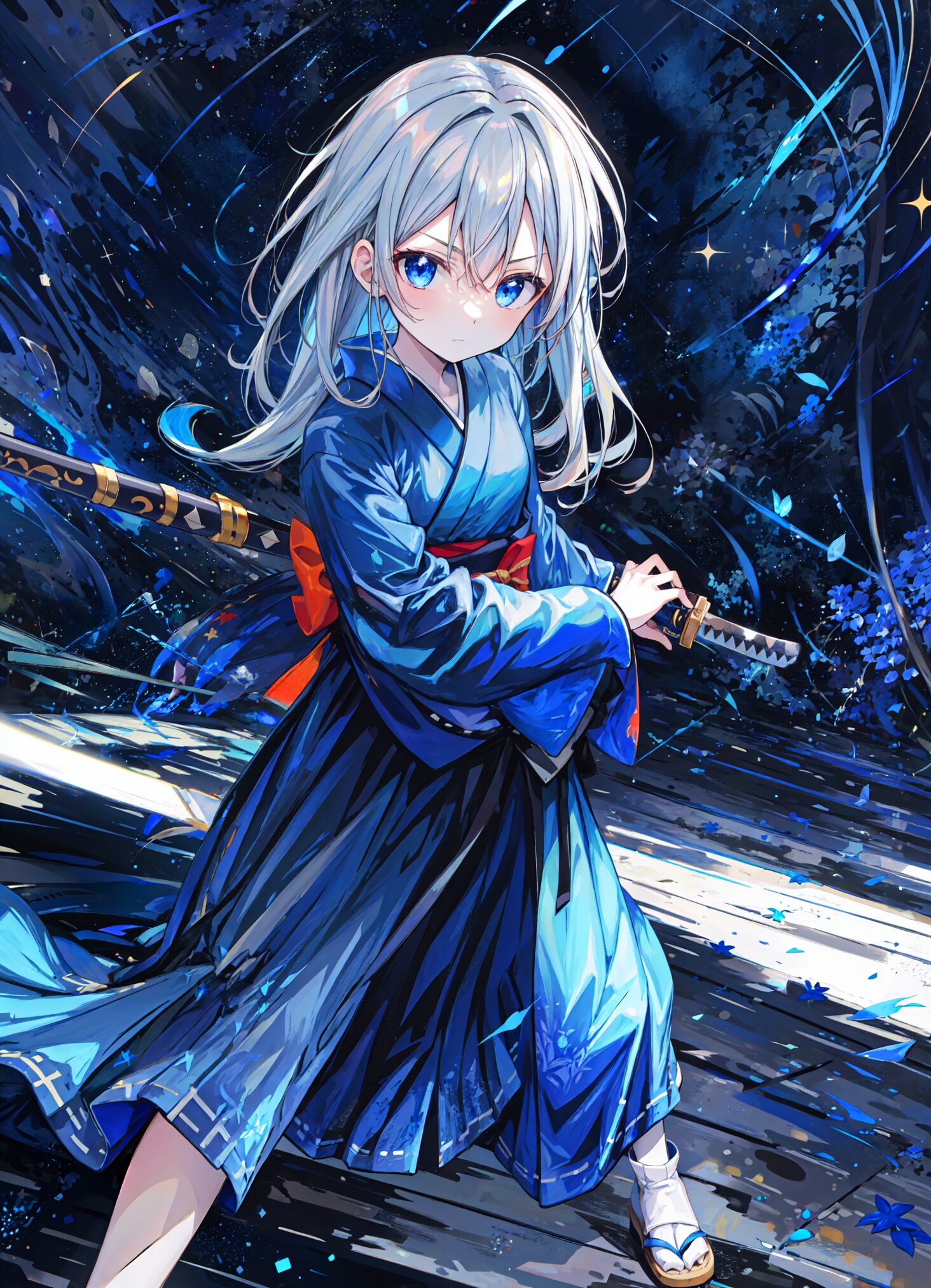 にアイデアを頂き、抜刀LoRA使って侍な感じにしてみました。