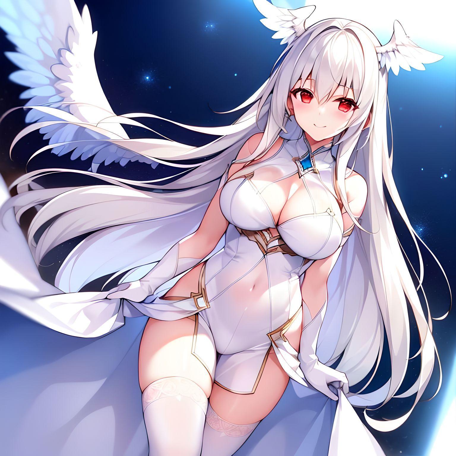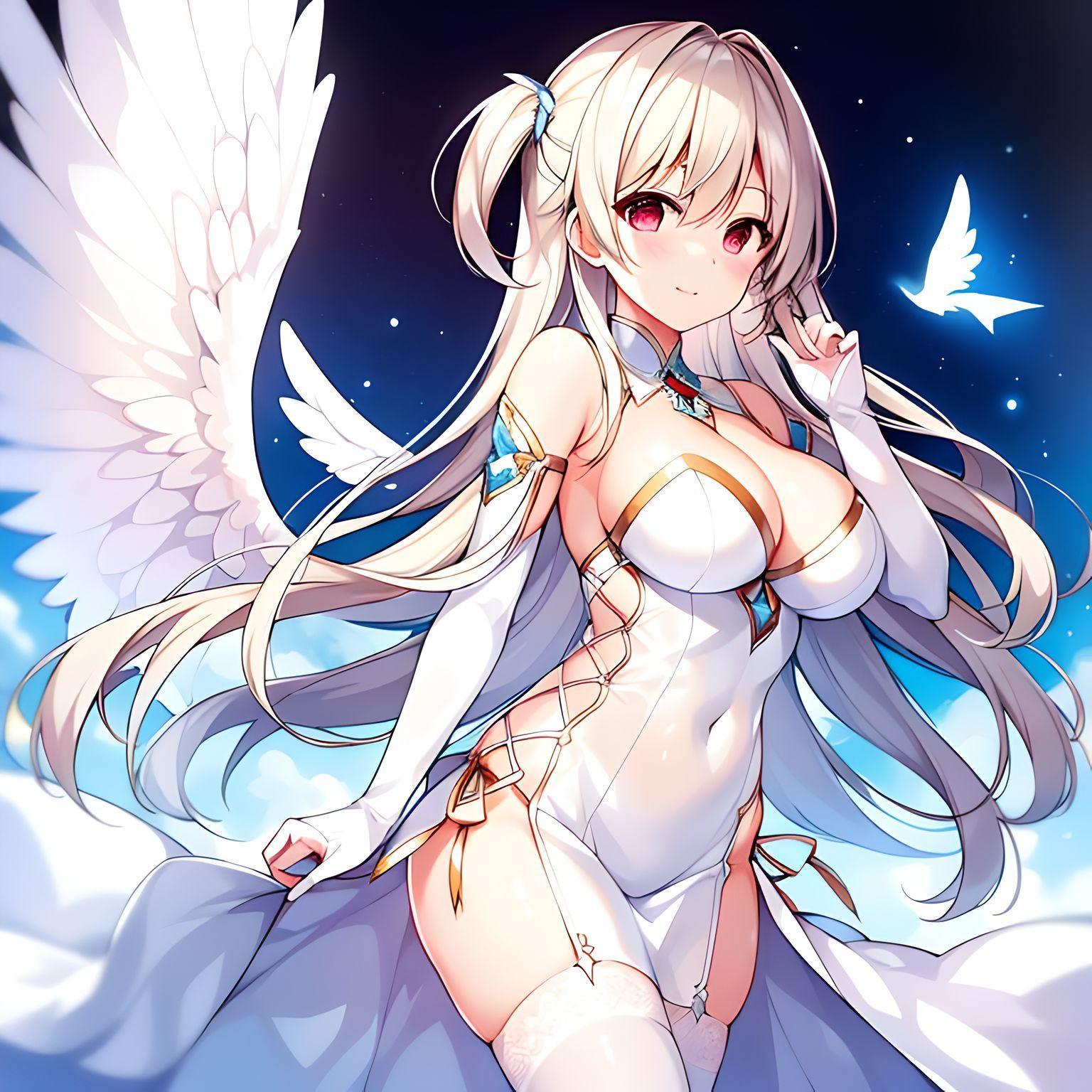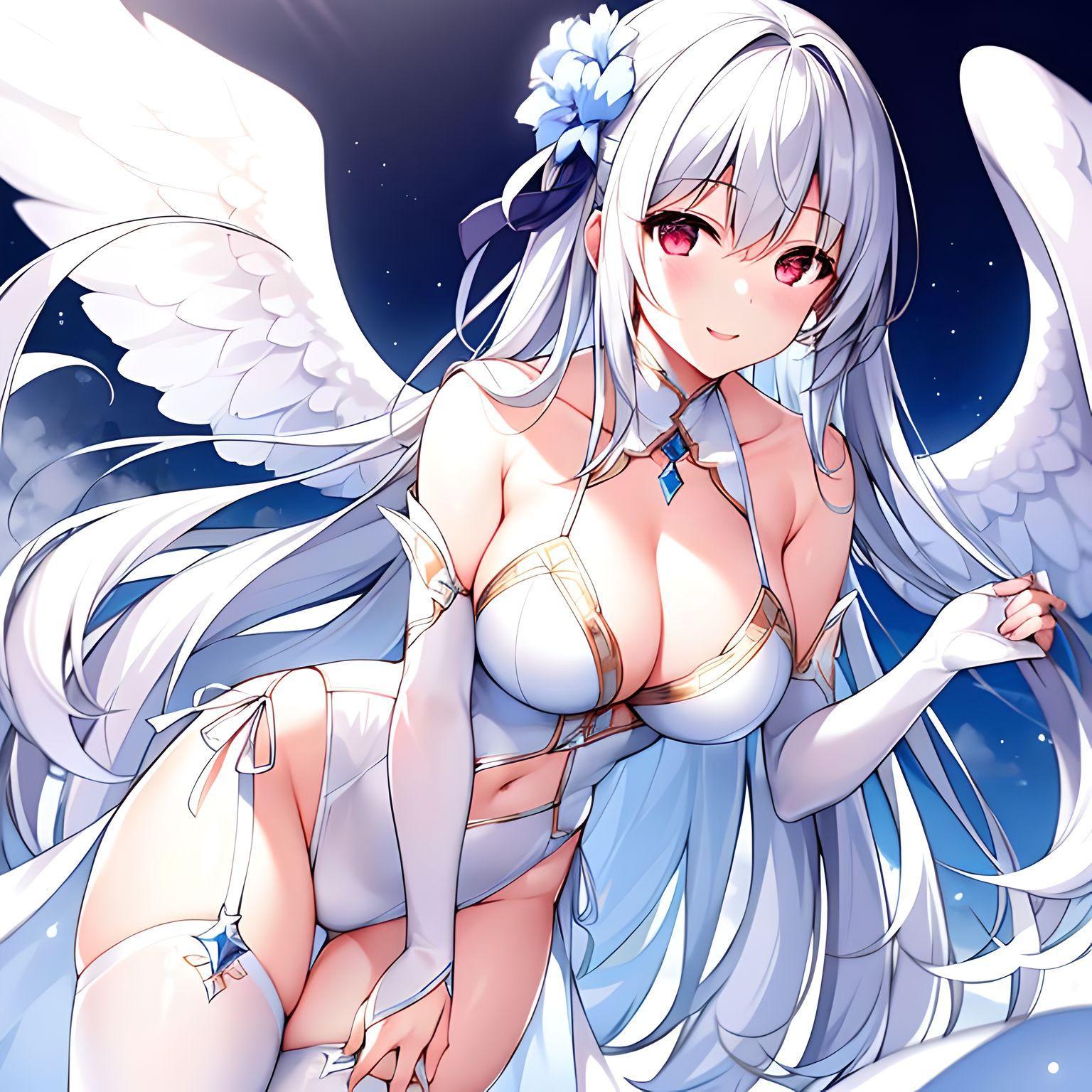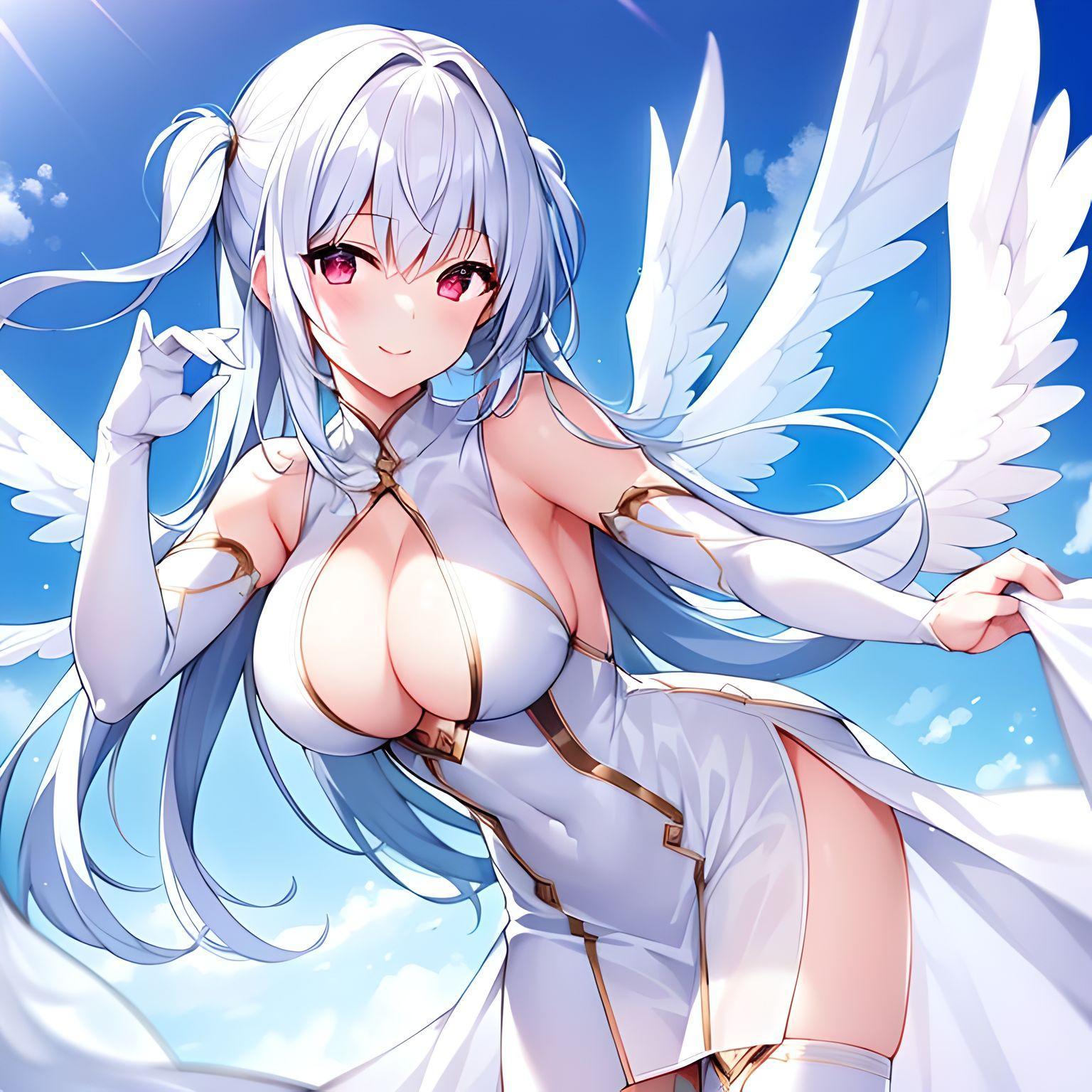 透き通るような印象のある幻想的な純白色の衣装を着た女の天使。