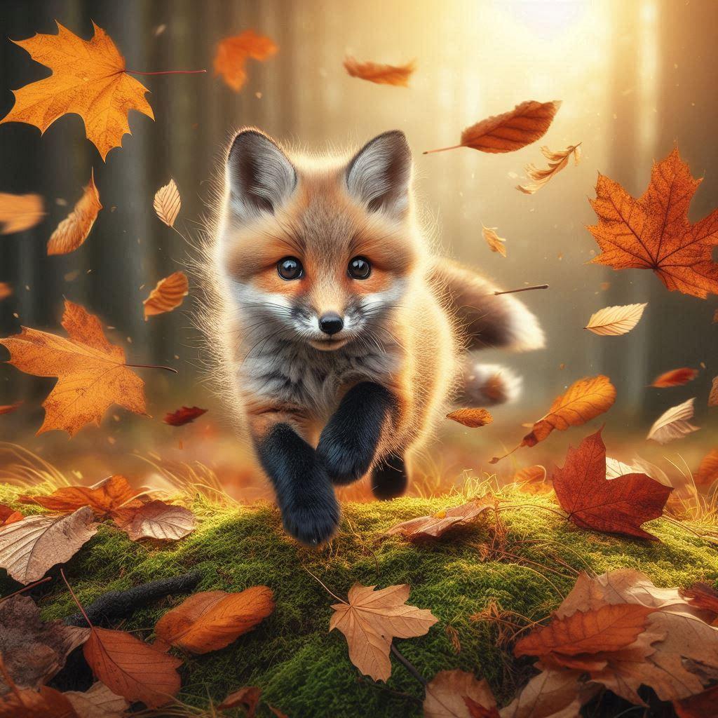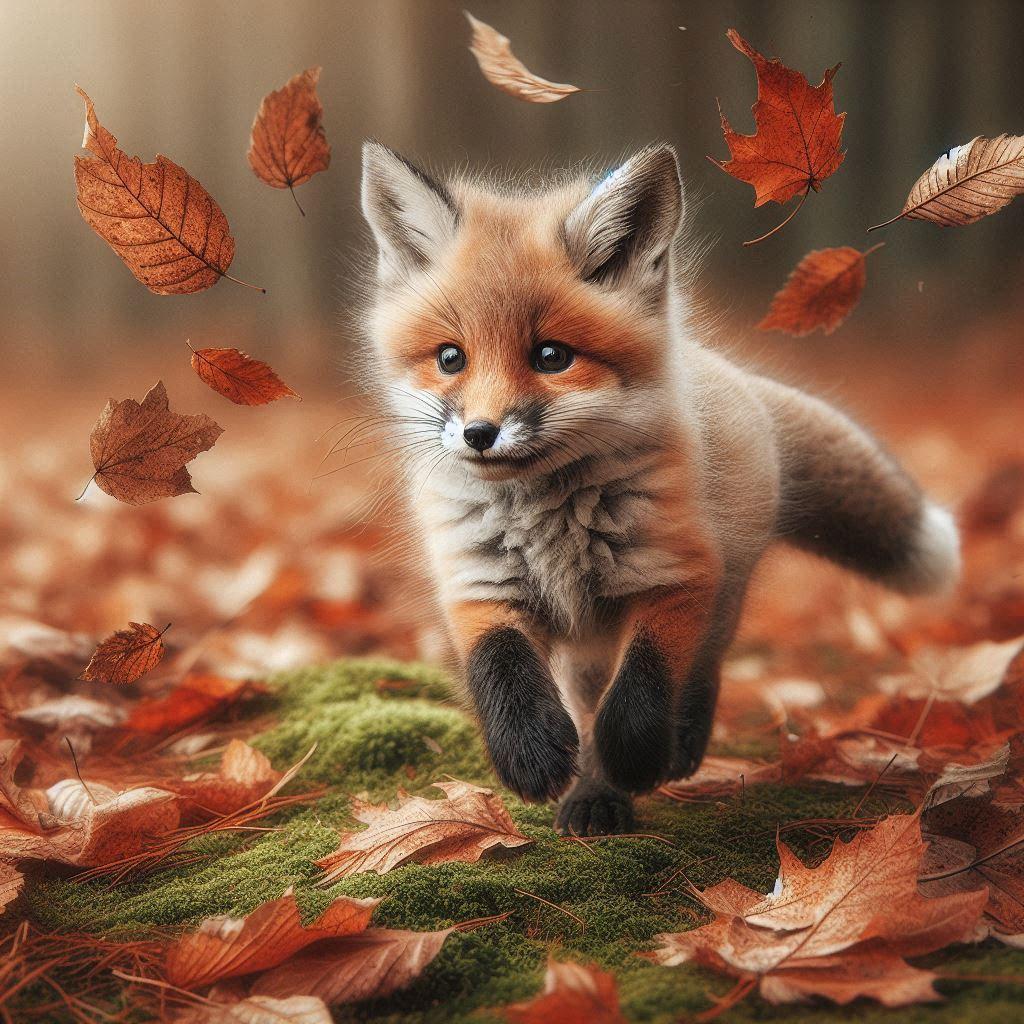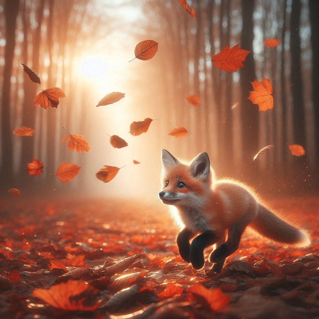 落ち葉を追うキツネ