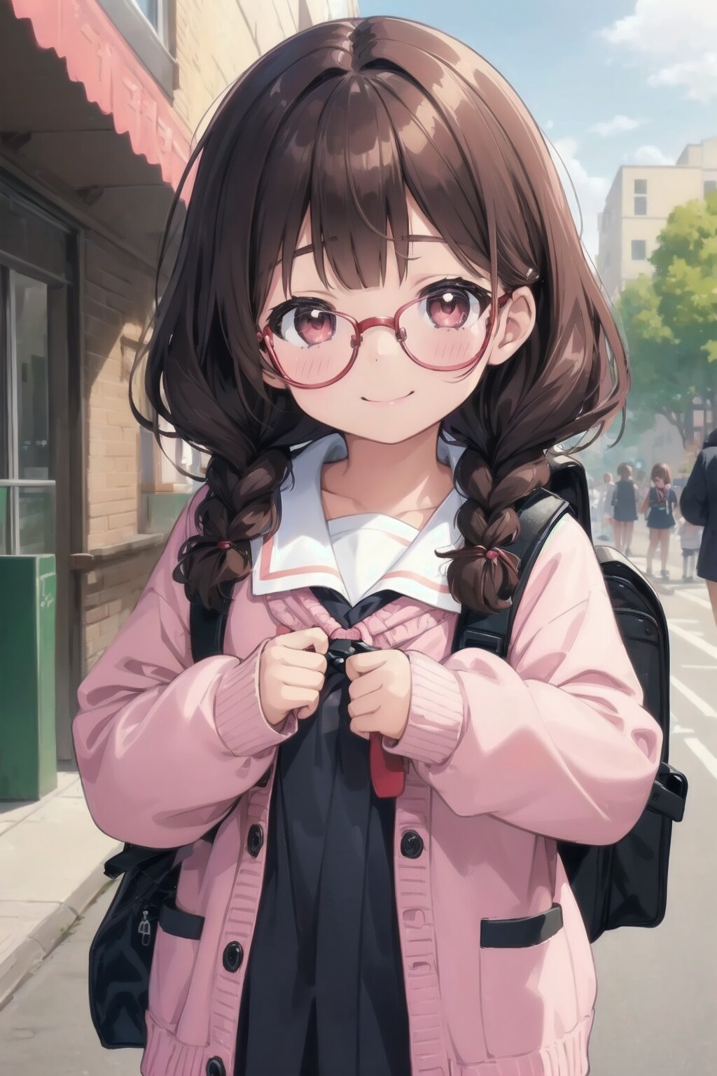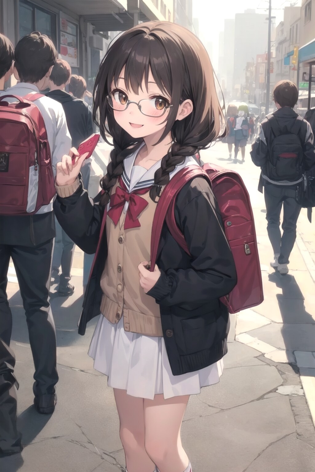 通学中の委員長ちゃん2回目の投稿、投稿企画にあわせてニットのカーディガンを着せてみました。プロンプトでの重ね着を説明してたサイトの通りにしてたら4枚目や5枚目のように上着と制服が逆になってしまったので服の順番を逆にしたら初めに意図したようなものになりました。あと、クオリティ関係のプロンプトを以前のものに戻してみました。自分の思う委員長ちゃんにはこれが一番可愛いくなる呪文なのかも。