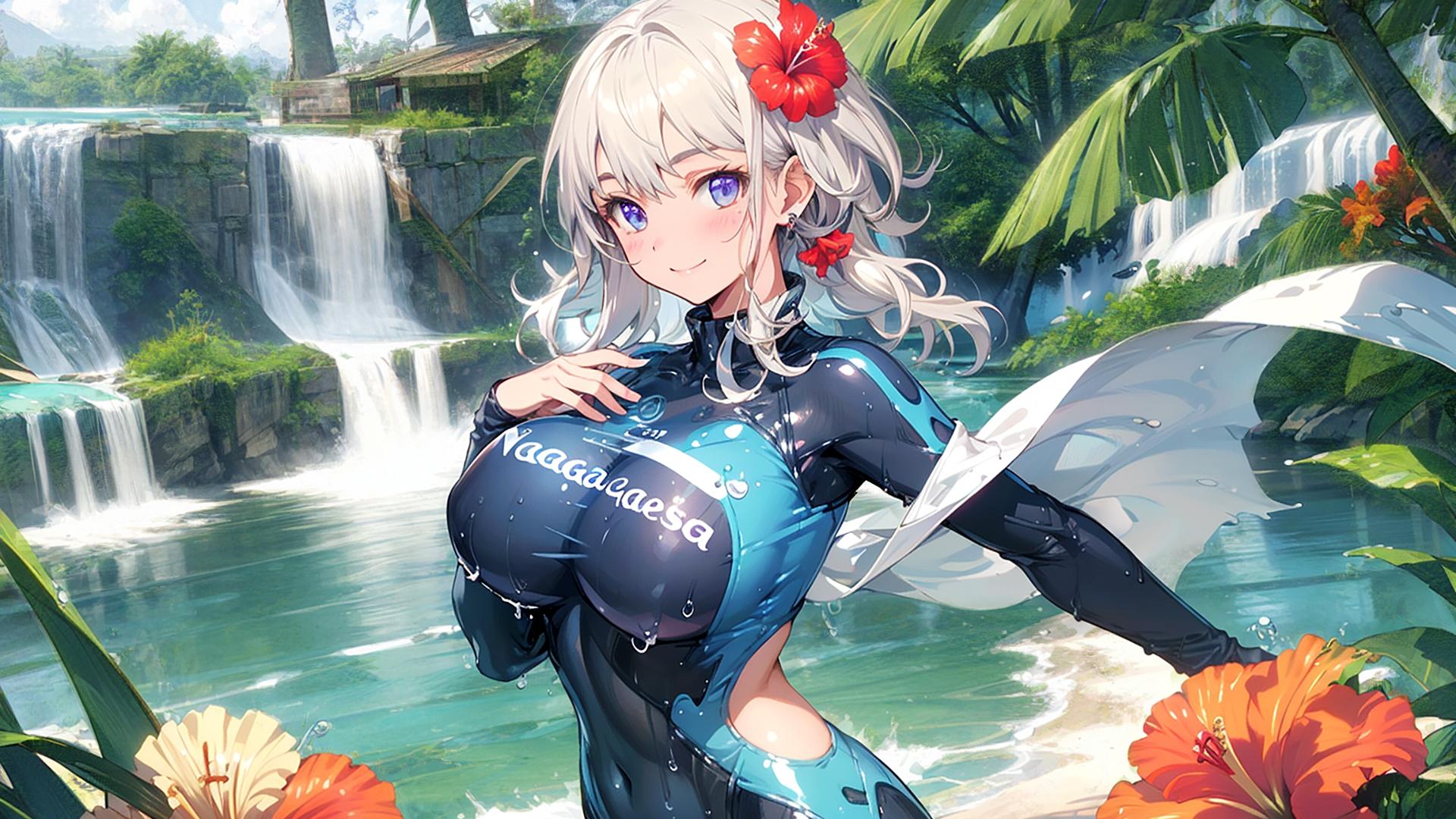 一枚目がちちぷい生成画像を横1920pixelに拡大後、加筆修整したもの、