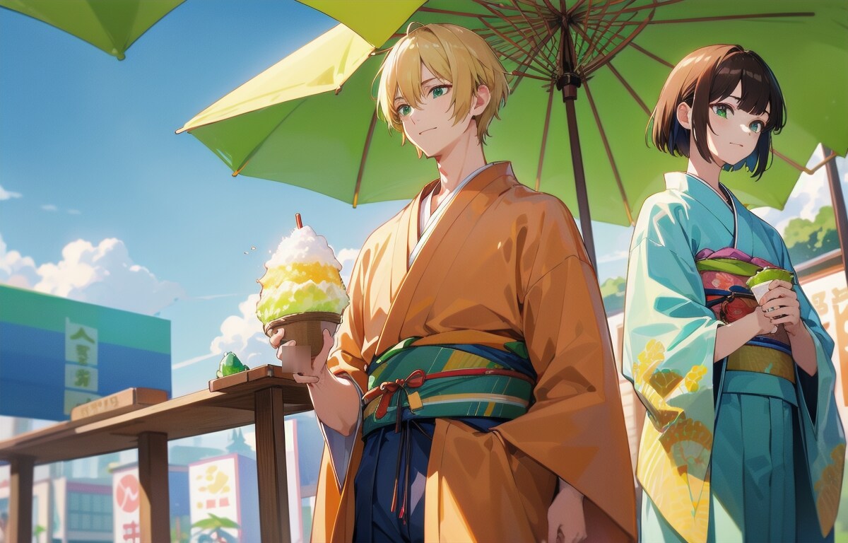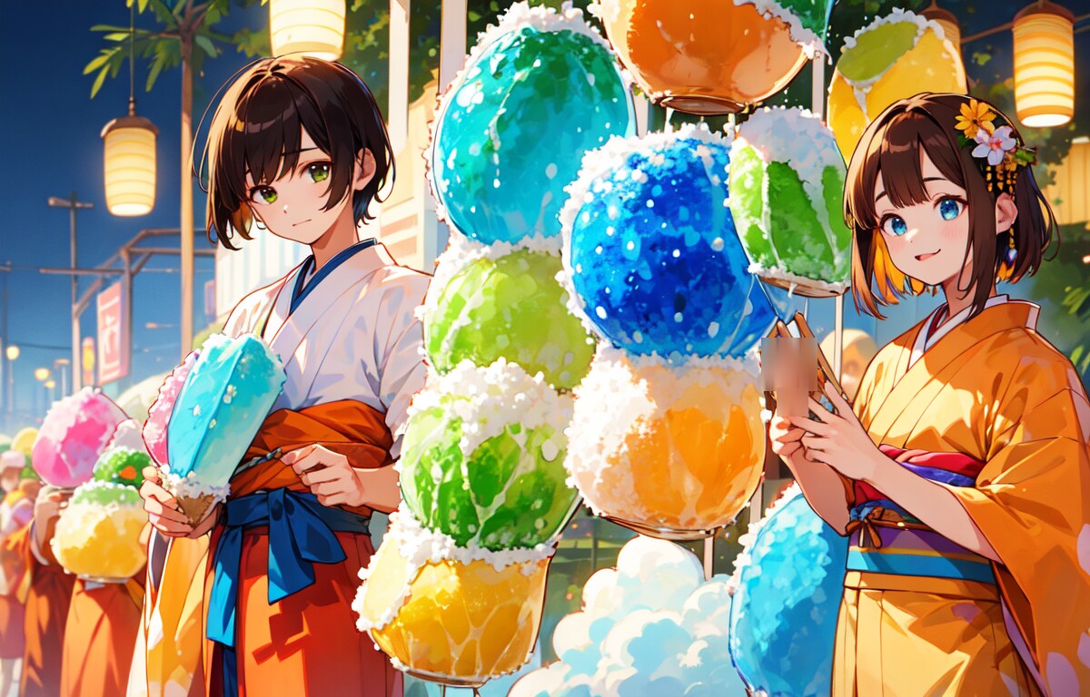 女性達(男性も少しいる)と、かき氷のひと夏をご覧ください!!