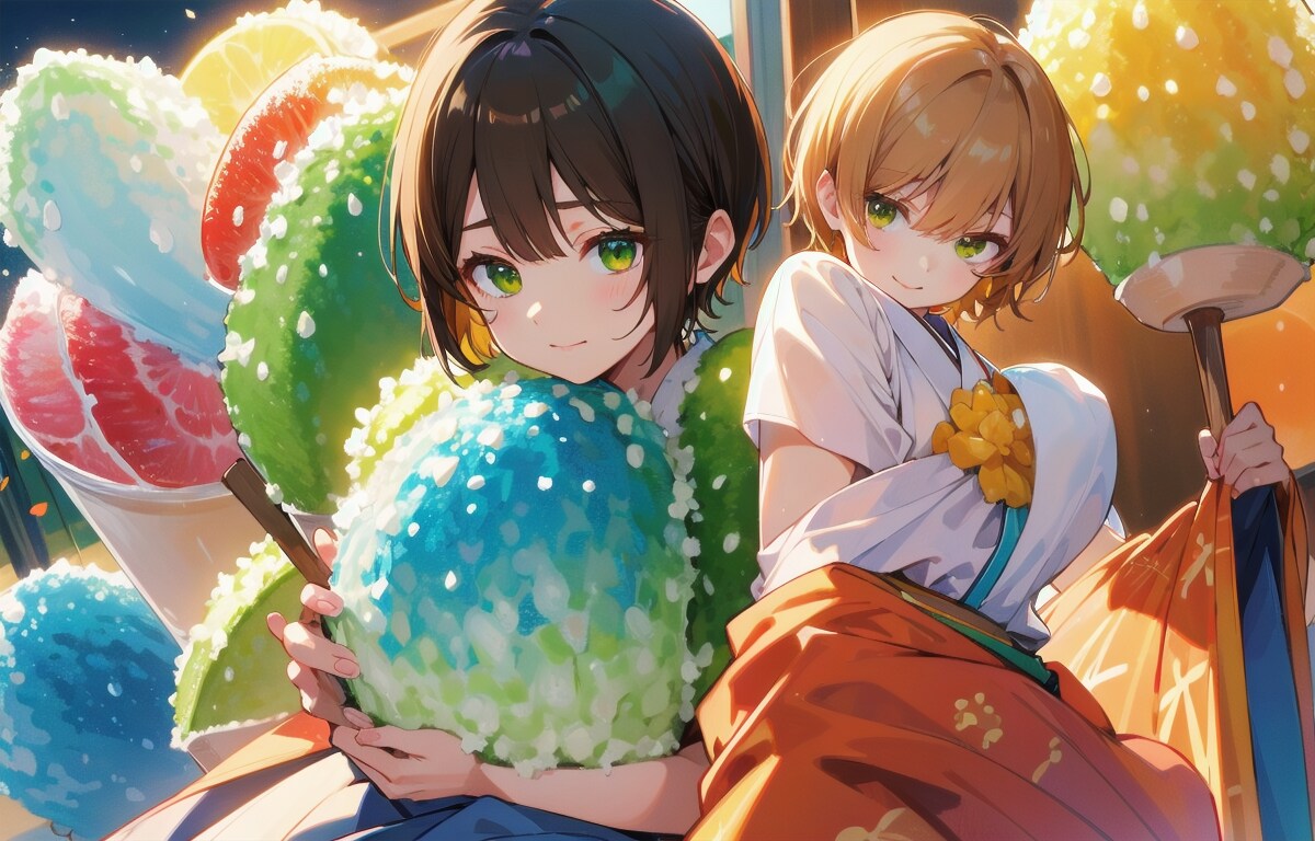 トップイラストは迷いましたが、この子の可愛さ&カラフルなかき氷を皆さんに見て欲しかったので、トップイラストにしました。手の荒がなかったら…!