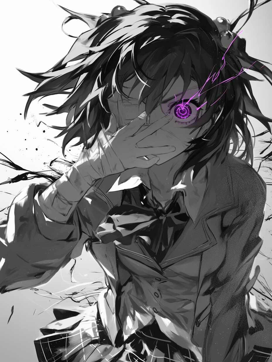 顔を抑えてるポーズとそれっぽいポーズにしてみました。なんとなくシュタインズゲートっぽいポーズ。