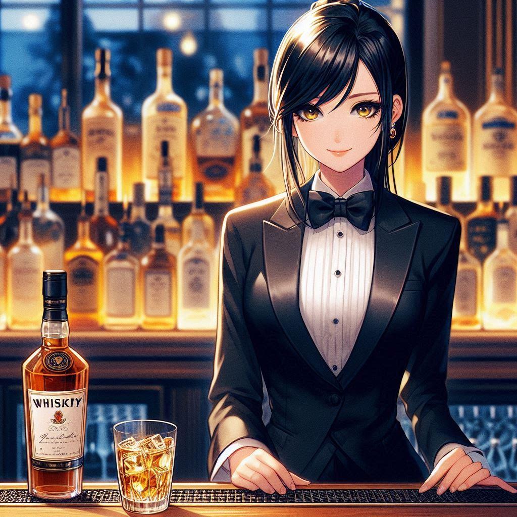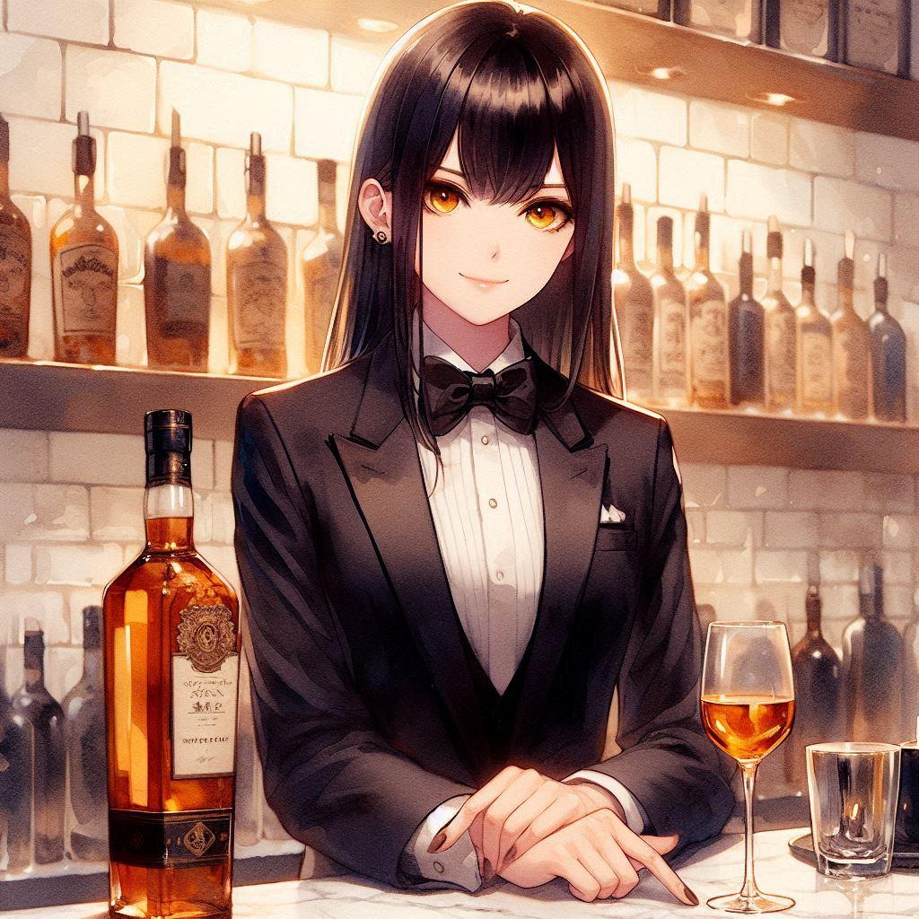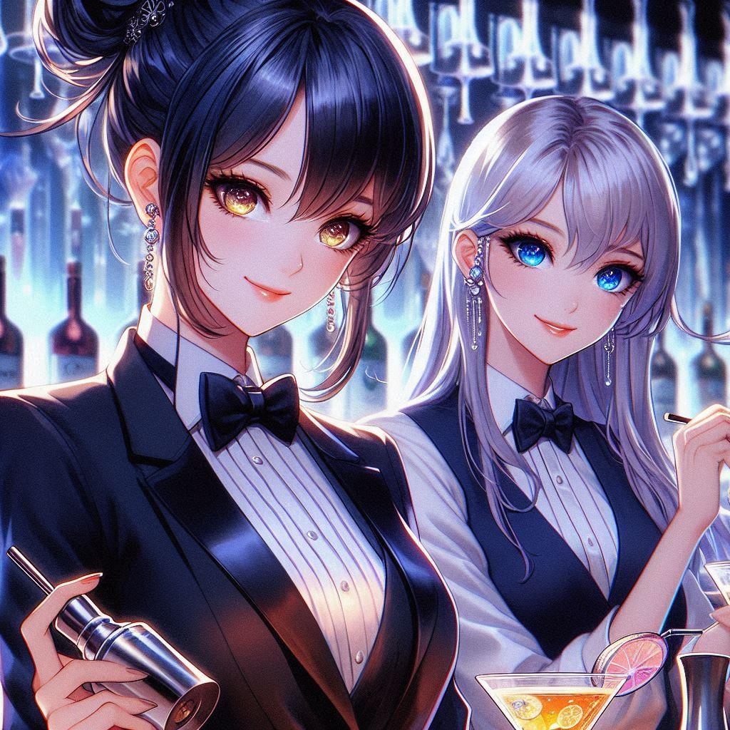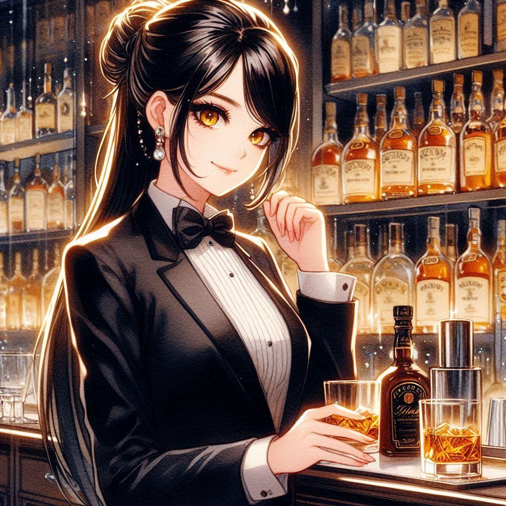 今回お借りしたのは女性探偵のミアさん!更にいわしまんさんの設定で「一日バーメイド体験」という楽しいアイディアをいただいていたので、これにも乗っからせてもらい、ミアさんが体験している様子を生成させてもらっています♪