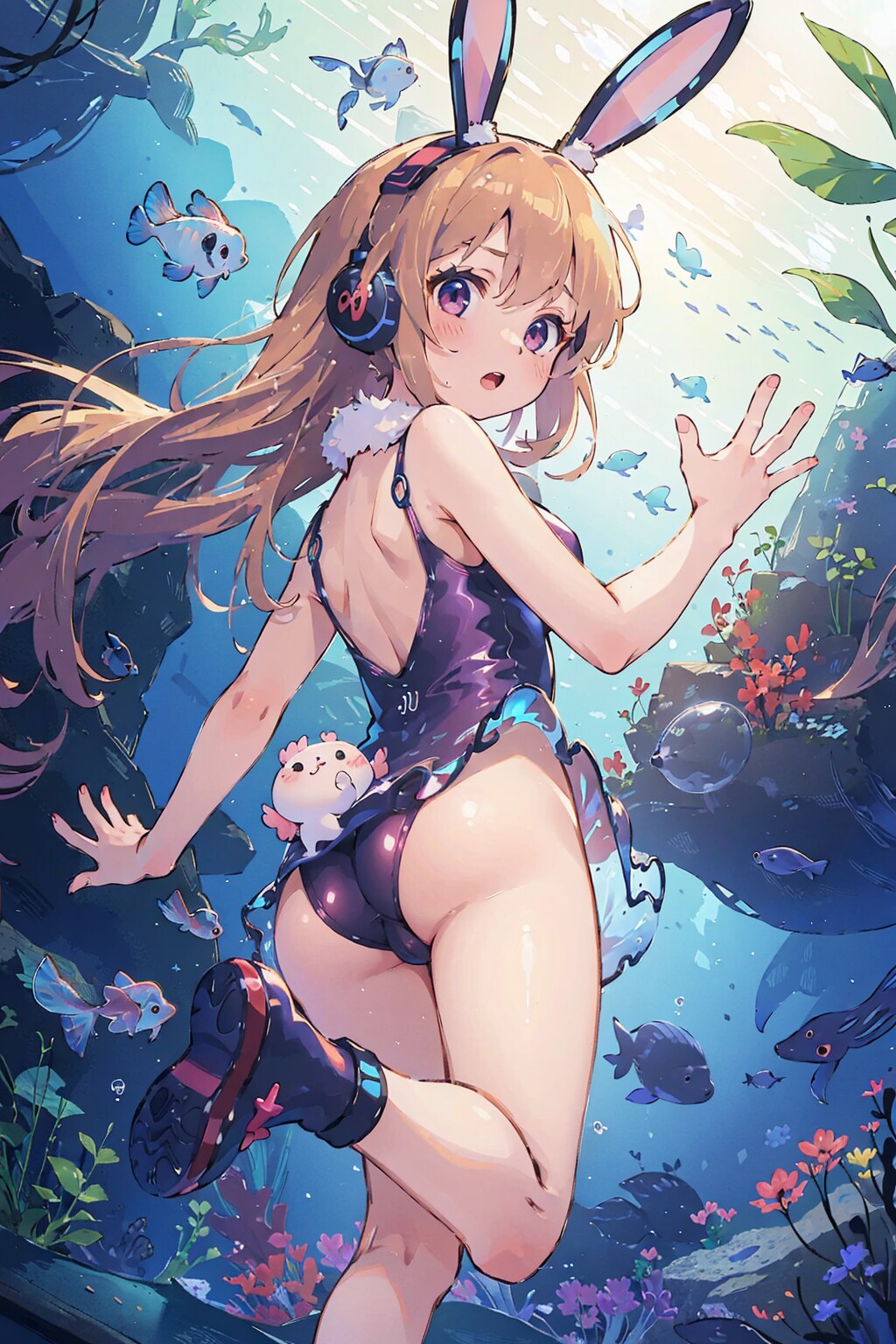 いつものようなキャプション小話はありませんが、以前投稿した神出鬼没の怪異「ヘッドフォン兎」ちゃんが、偶に海底にも表れ、ダイバー達をびっくりさせる的な脳内設定をイラスト化しました。