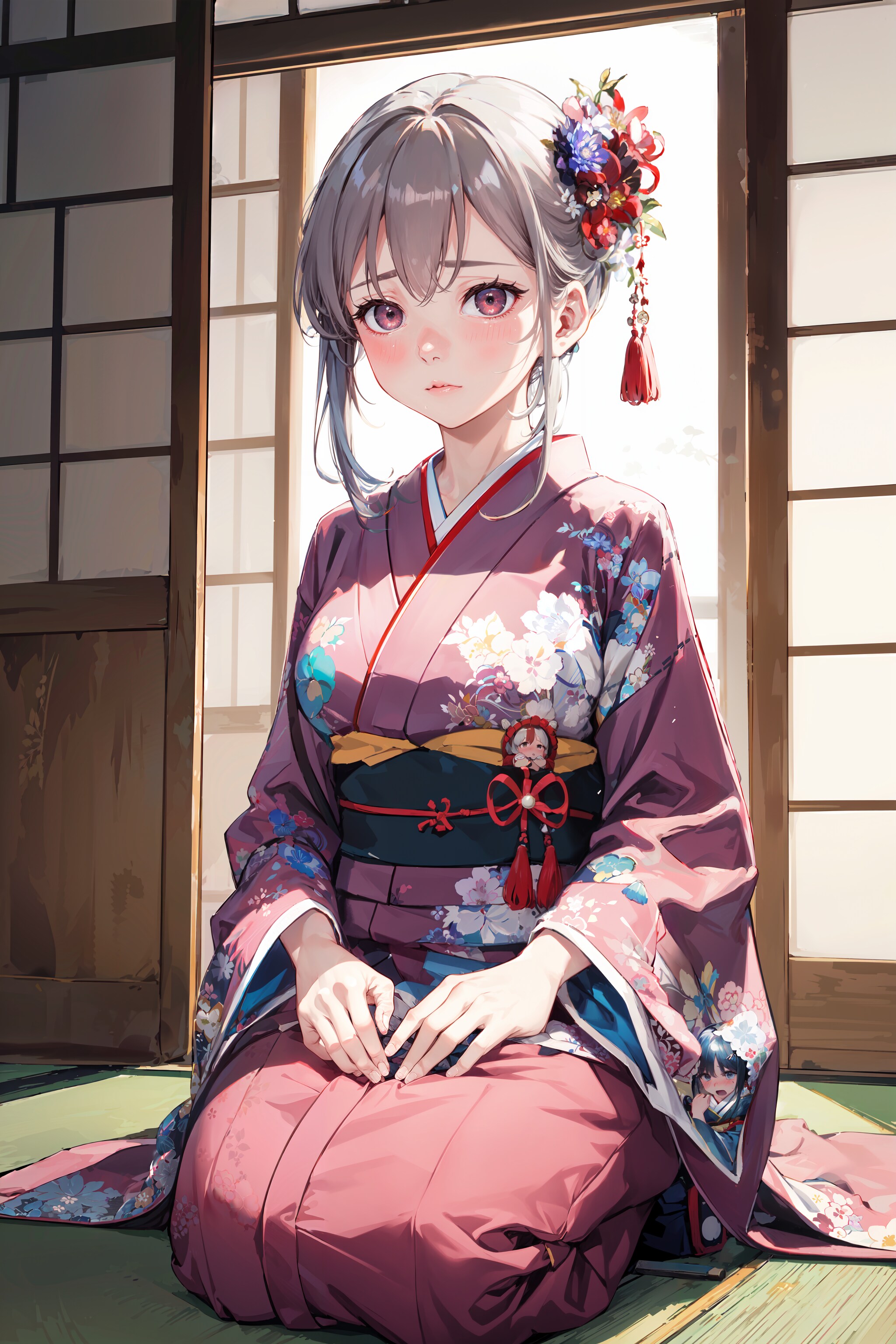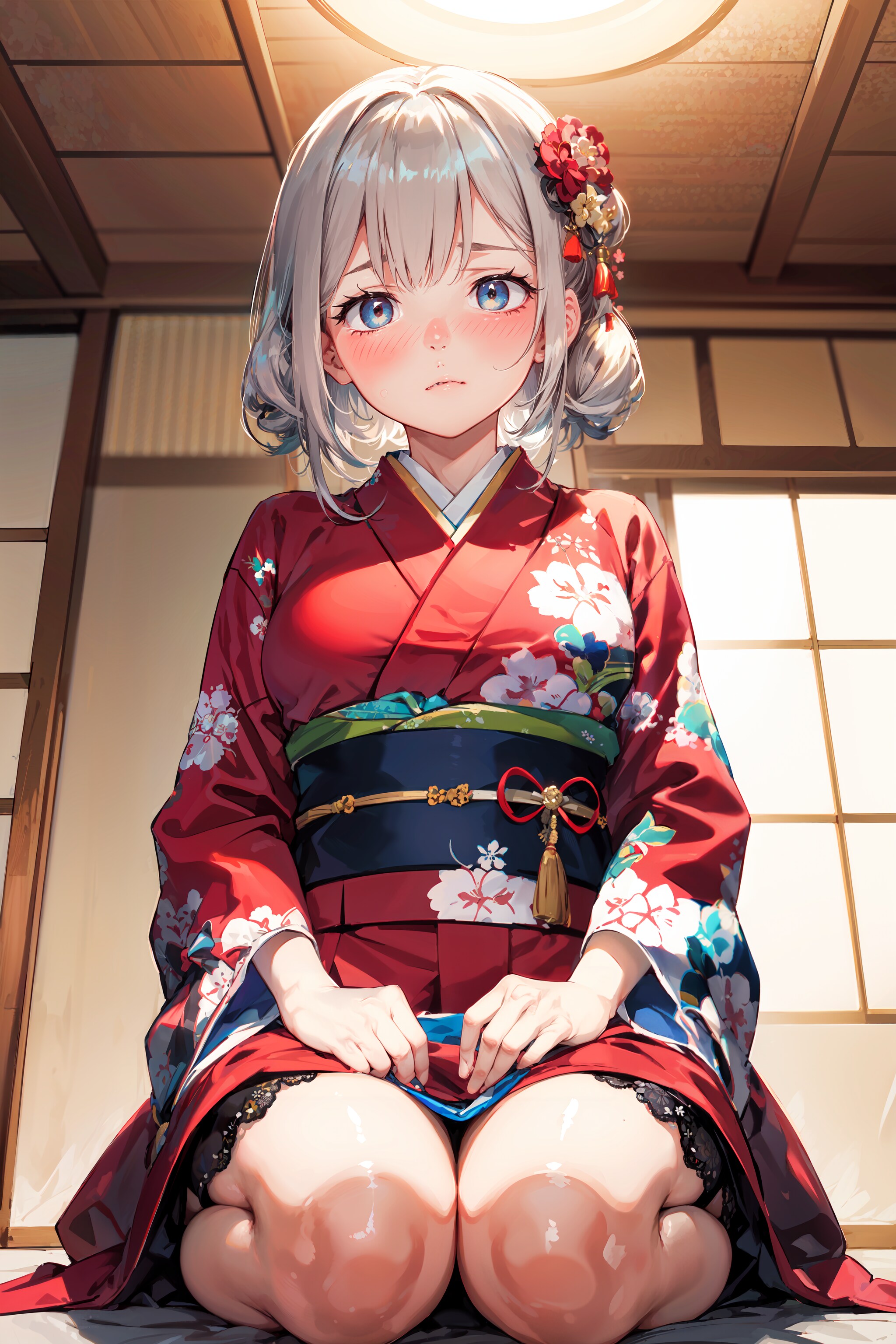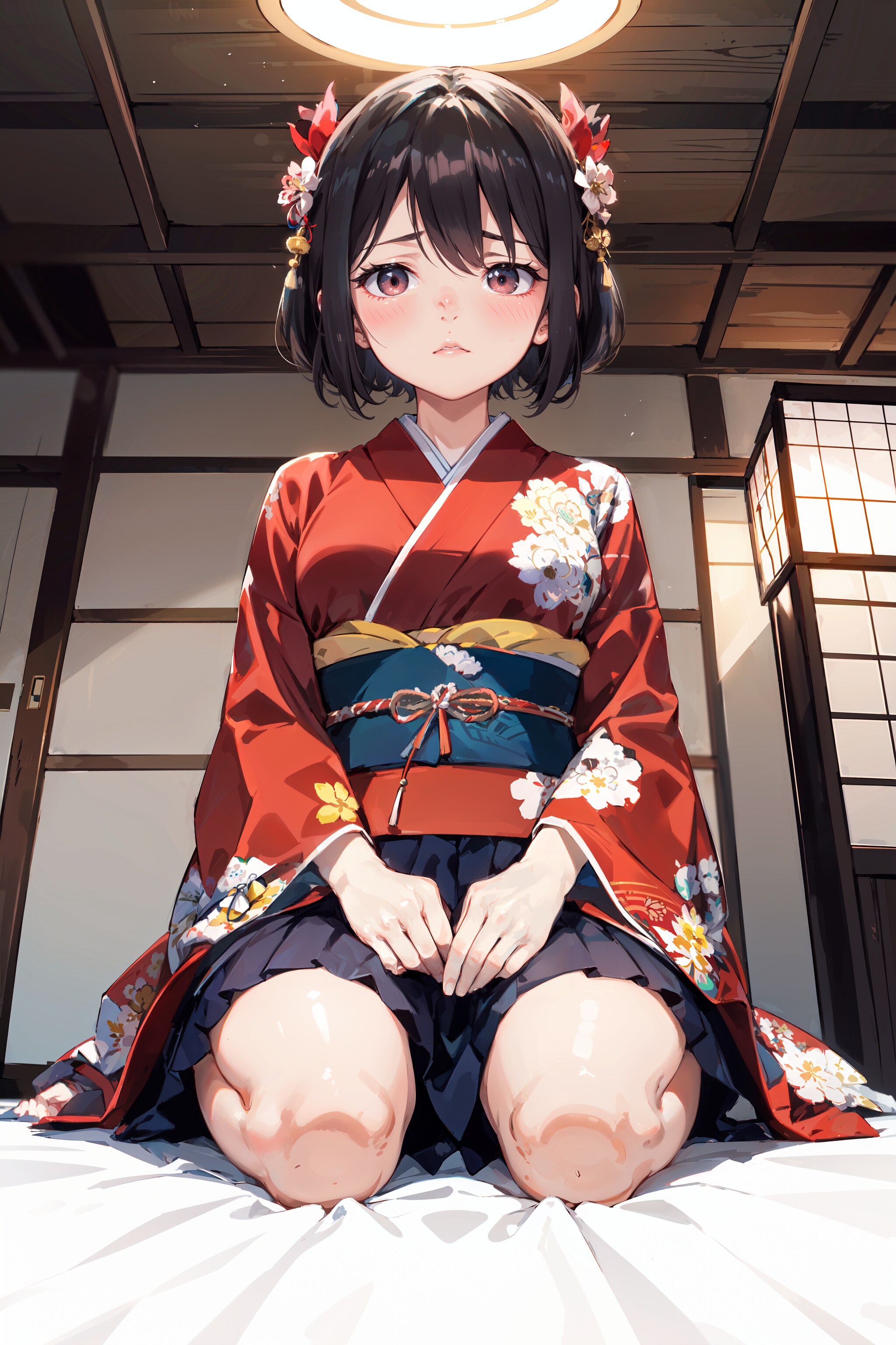 着物で正座させると何故かミニ丈になって膝を出してくるので着物LoRaの助けを借りました。