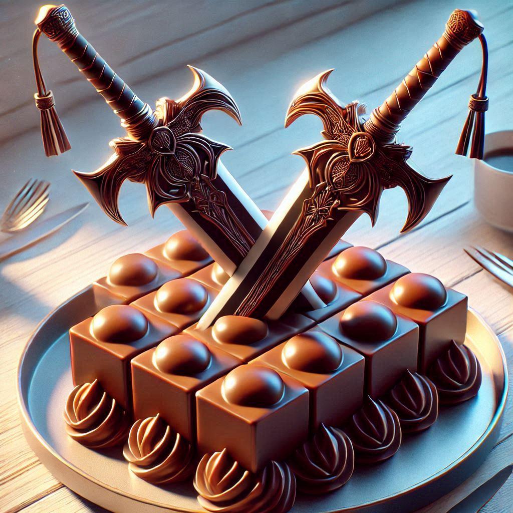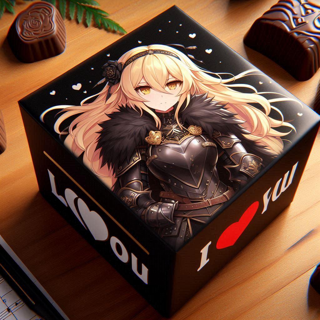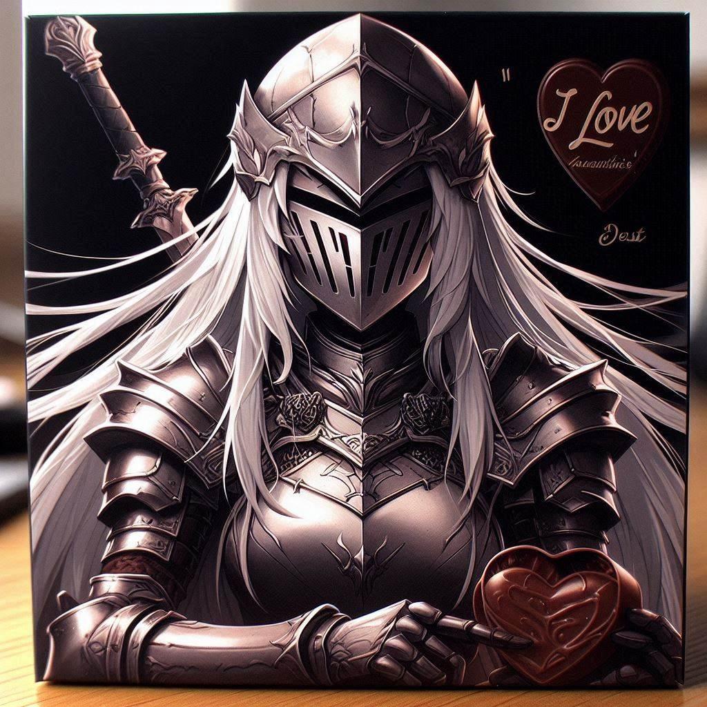 3、4:キルヴァリアのバレンタインチョコの箱と、バレンタインチョコ。二本の大剣が突き刺さったような、こちらもケーキ型である。