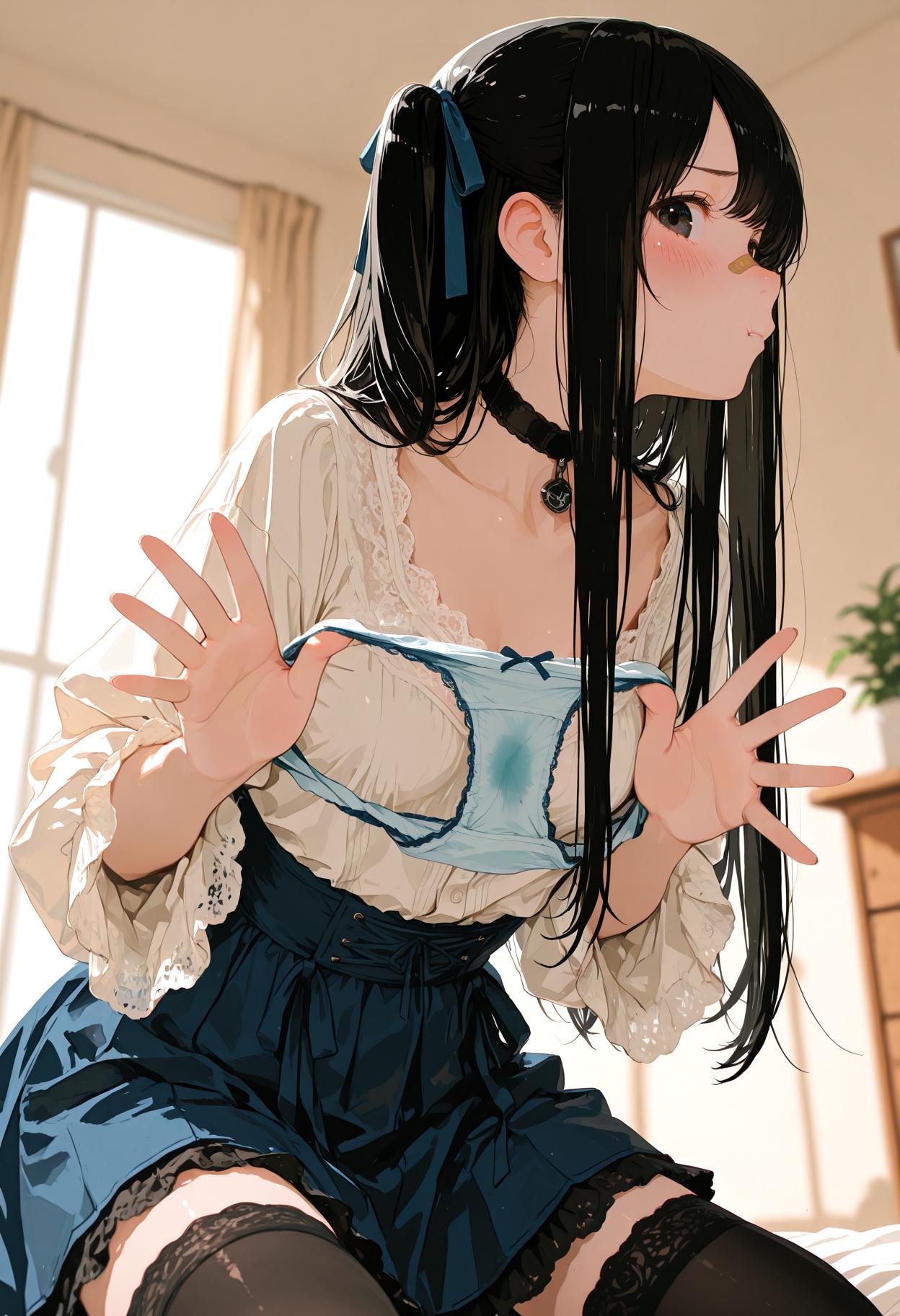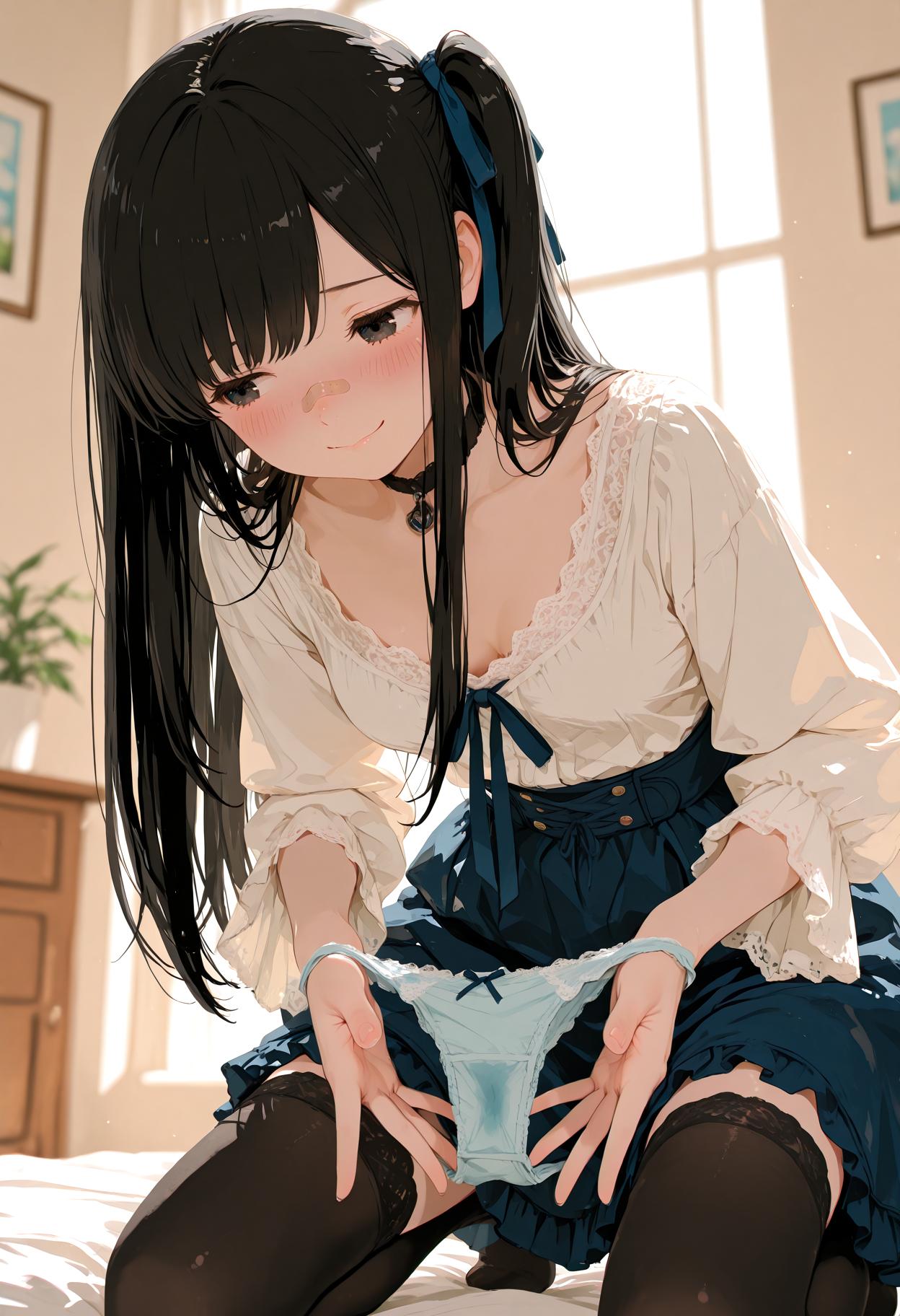 絆創膏 on noseの女の子にパンティブラをお願いしてみた