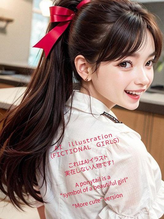 これは私の“2枚看板”にしたいAIイラストポニーテール美少女の“もっとカワイイ”バージョンの試みとして、笑顔を引き出そうとしています。
