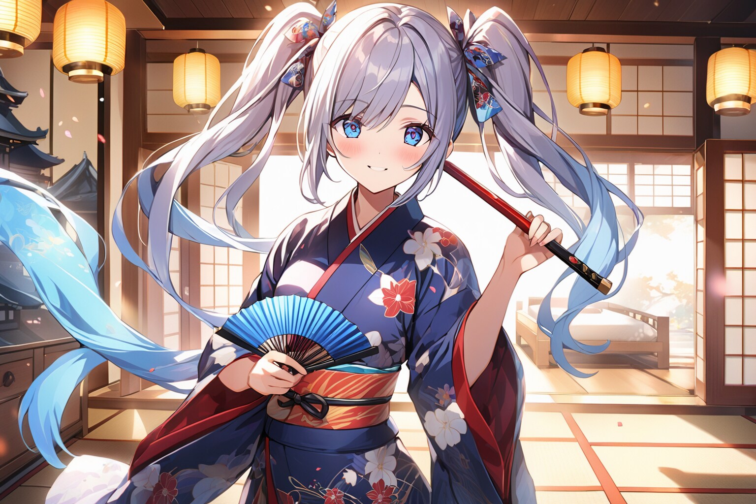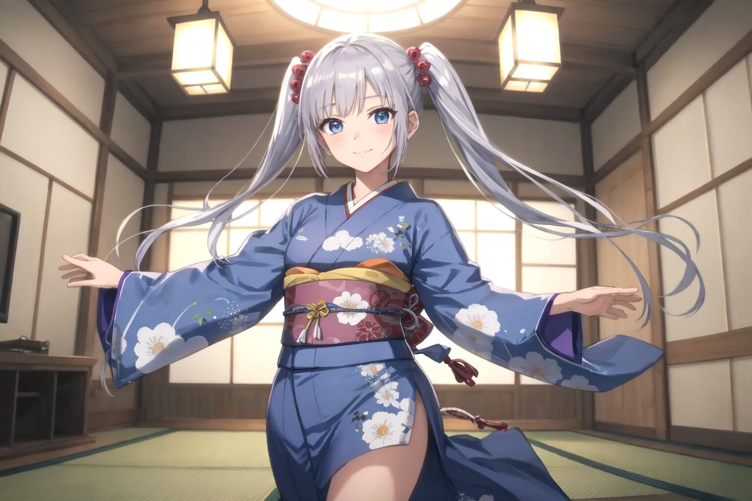 彲影ちゃんと桜の花びらと光がダンシングする和室♪