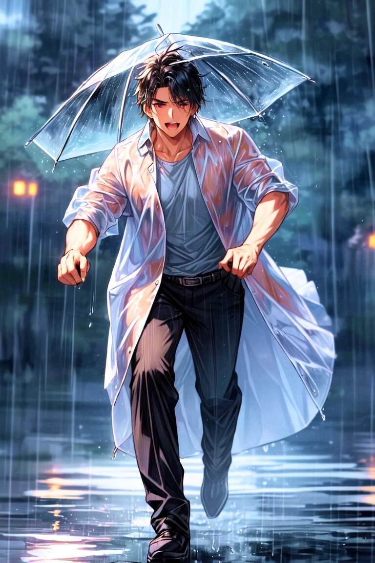 煌めく夜の選択*レインコートで、疾走する?黒髪短髪男性…!!(3枚)