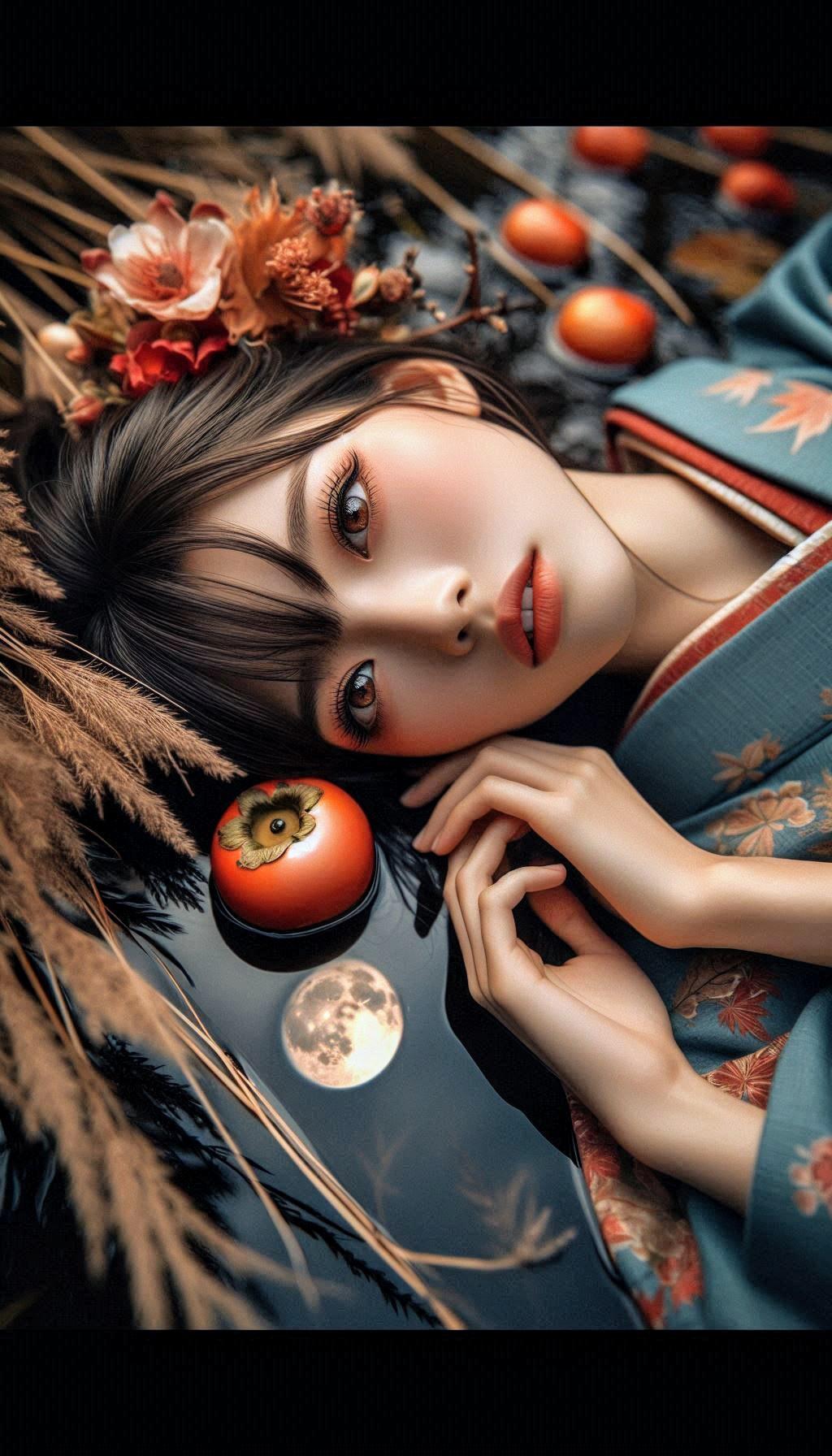 湖面に映る月