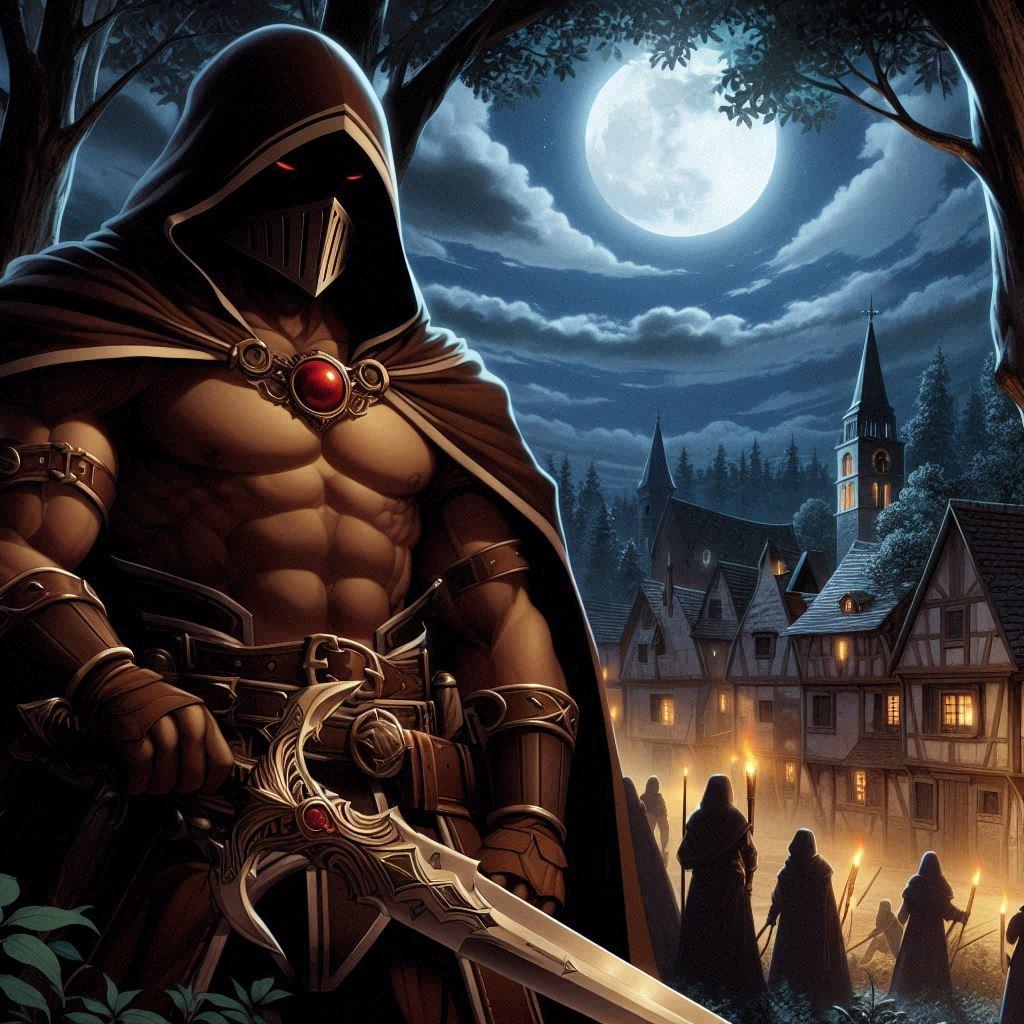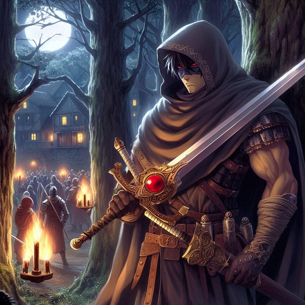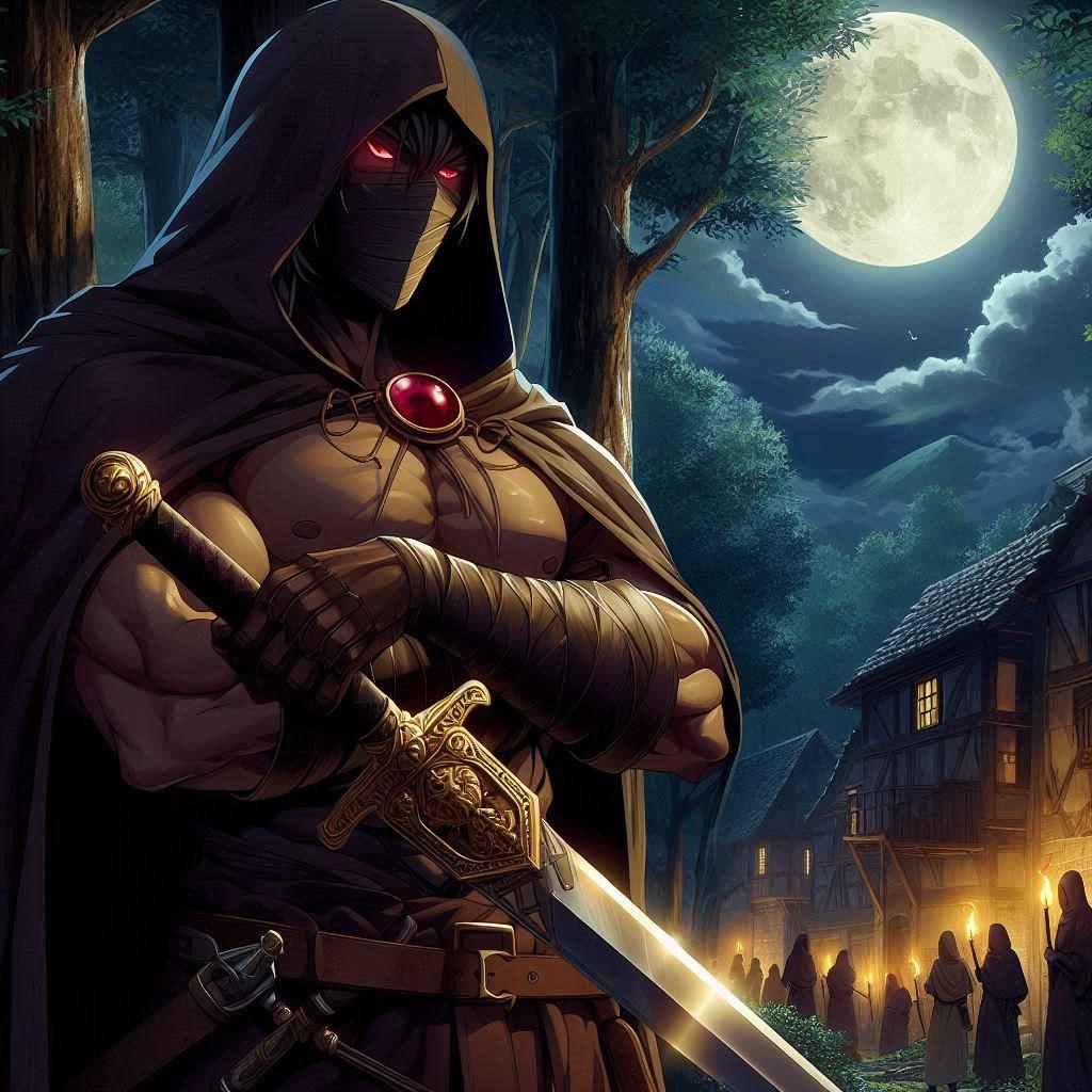 マリエをはじめ、村人たちも松明をかざして警戒中で。