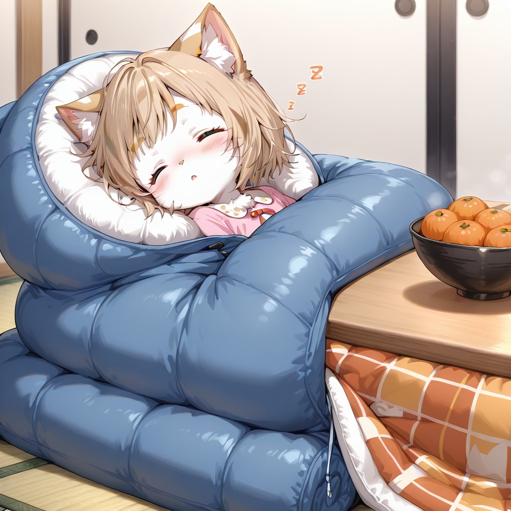 猫娘ちゃんと寝袋型こたつ布団w