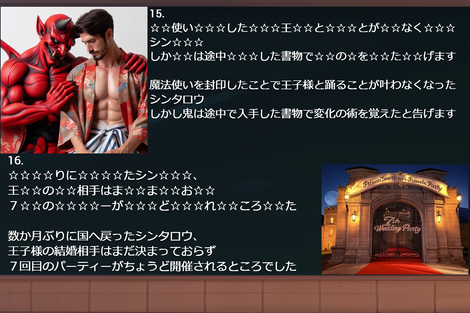 しか☆☆は途中☆☆☆した書物で☆☆の☆を☆☆た☆☆げます
