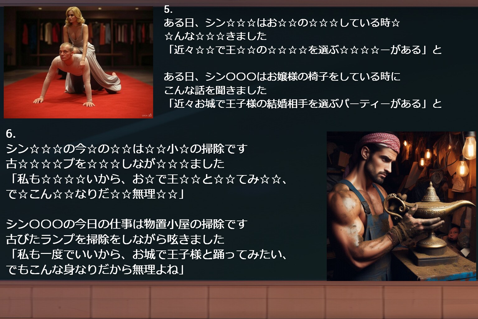 シン☆☆☆はとあるお☆☆に☆☆れた☆☆の子で、毎日毎日、お☆☆のお☆☆にサン☆バ☆☆代わりとして☆☆☆ていました。