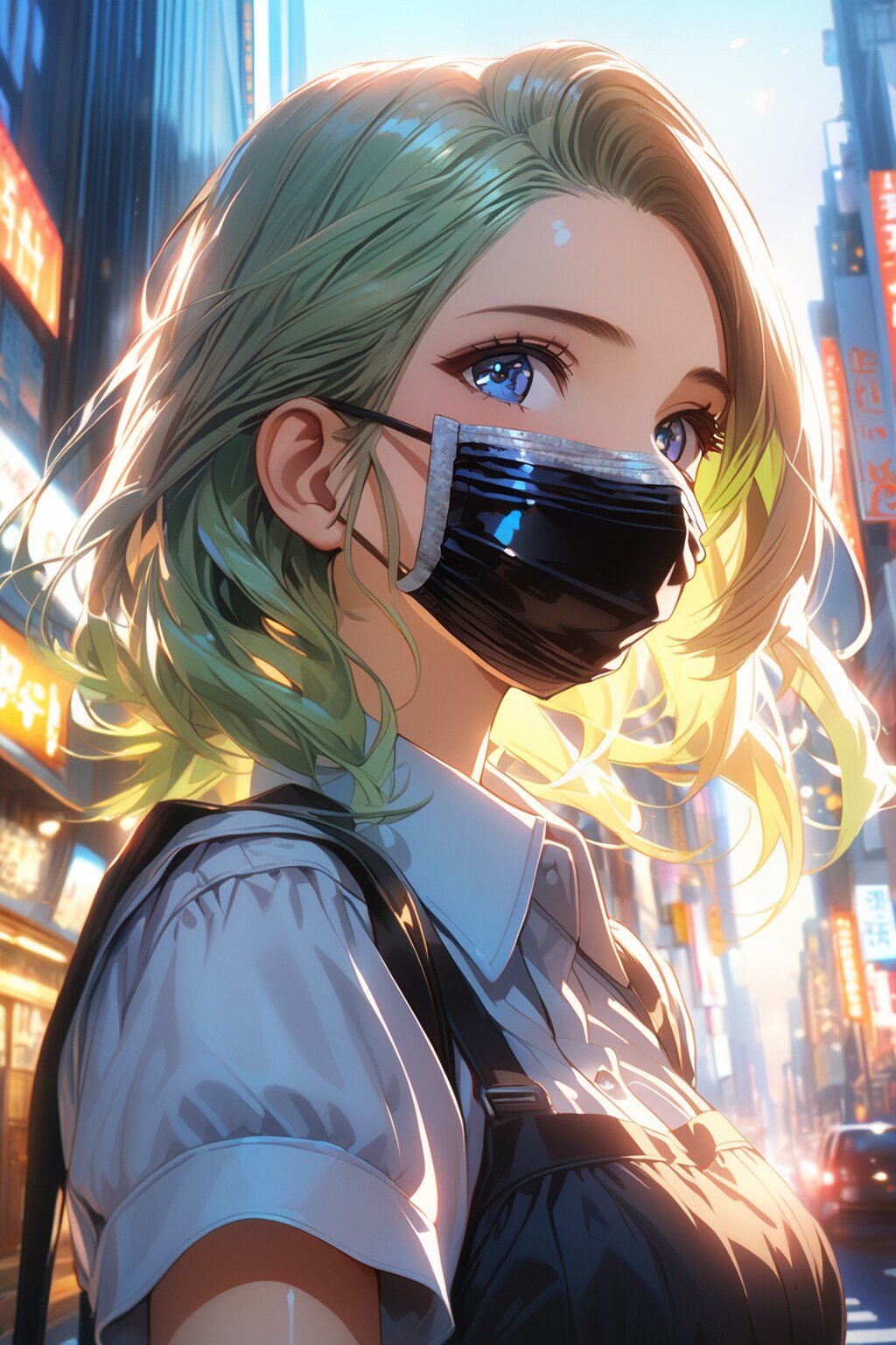 早朝出勤でしょうか。メタリックなマスクが印象的です。