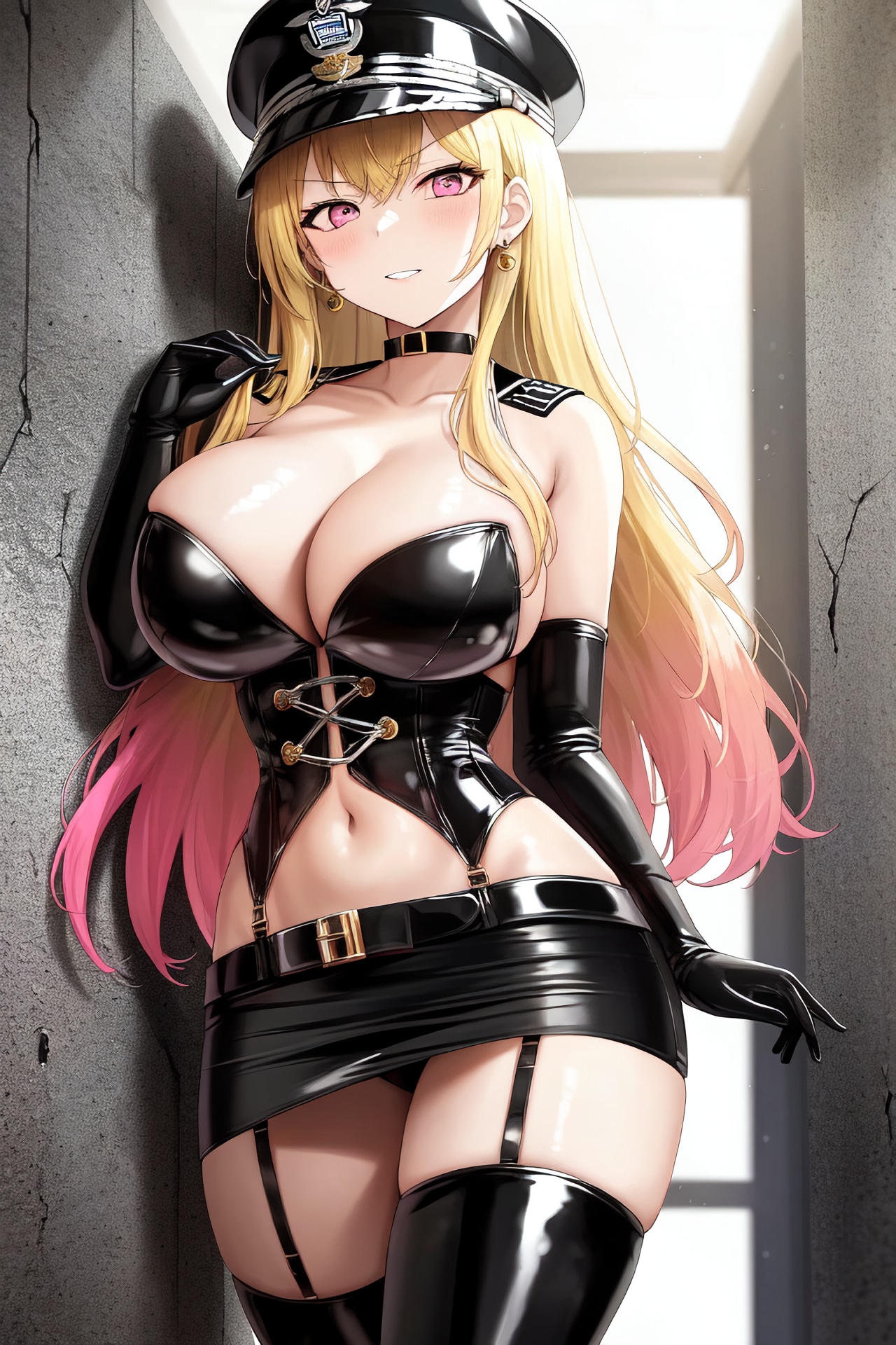 金髪ロング黒エナメルボンデージ女将校ちゃんピンクグラデーション