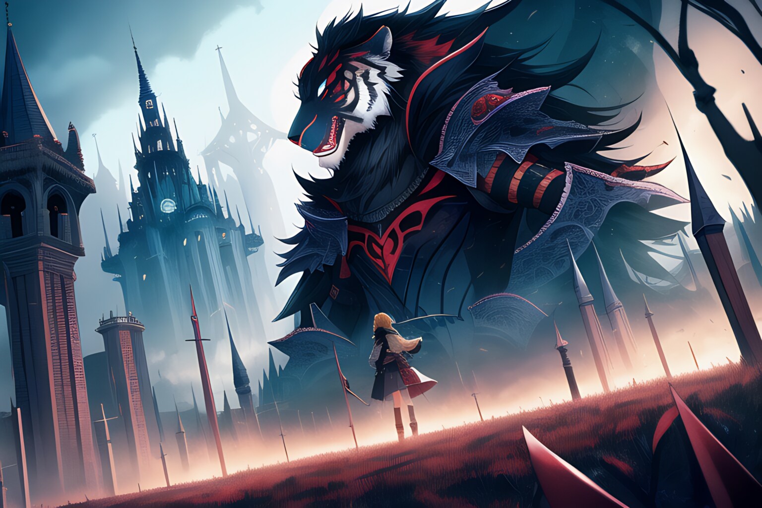 6枚目 illustration , fantasy city , knit , Tiger , ribbon ,