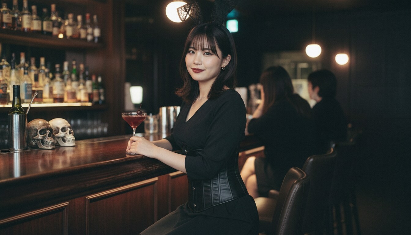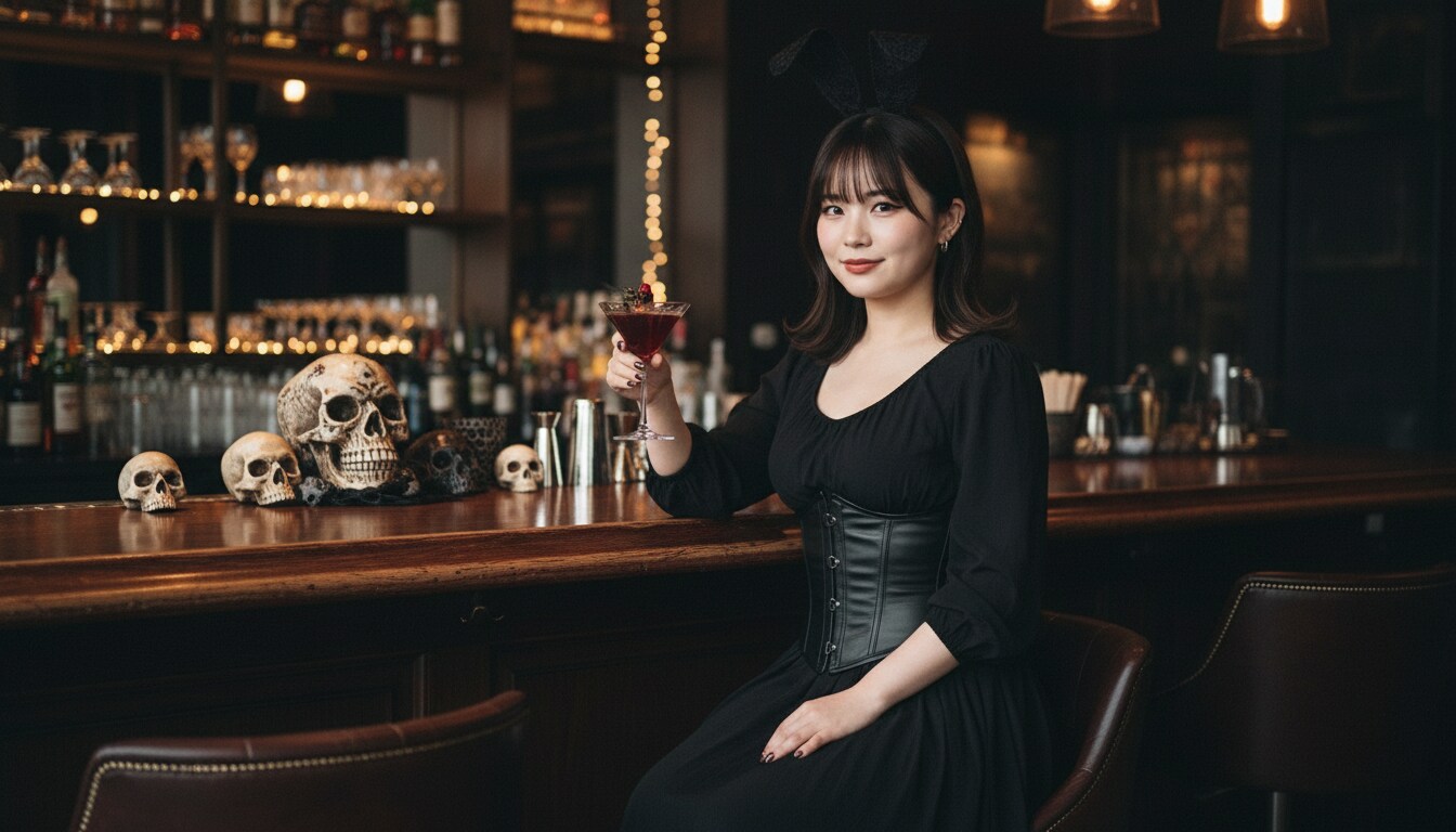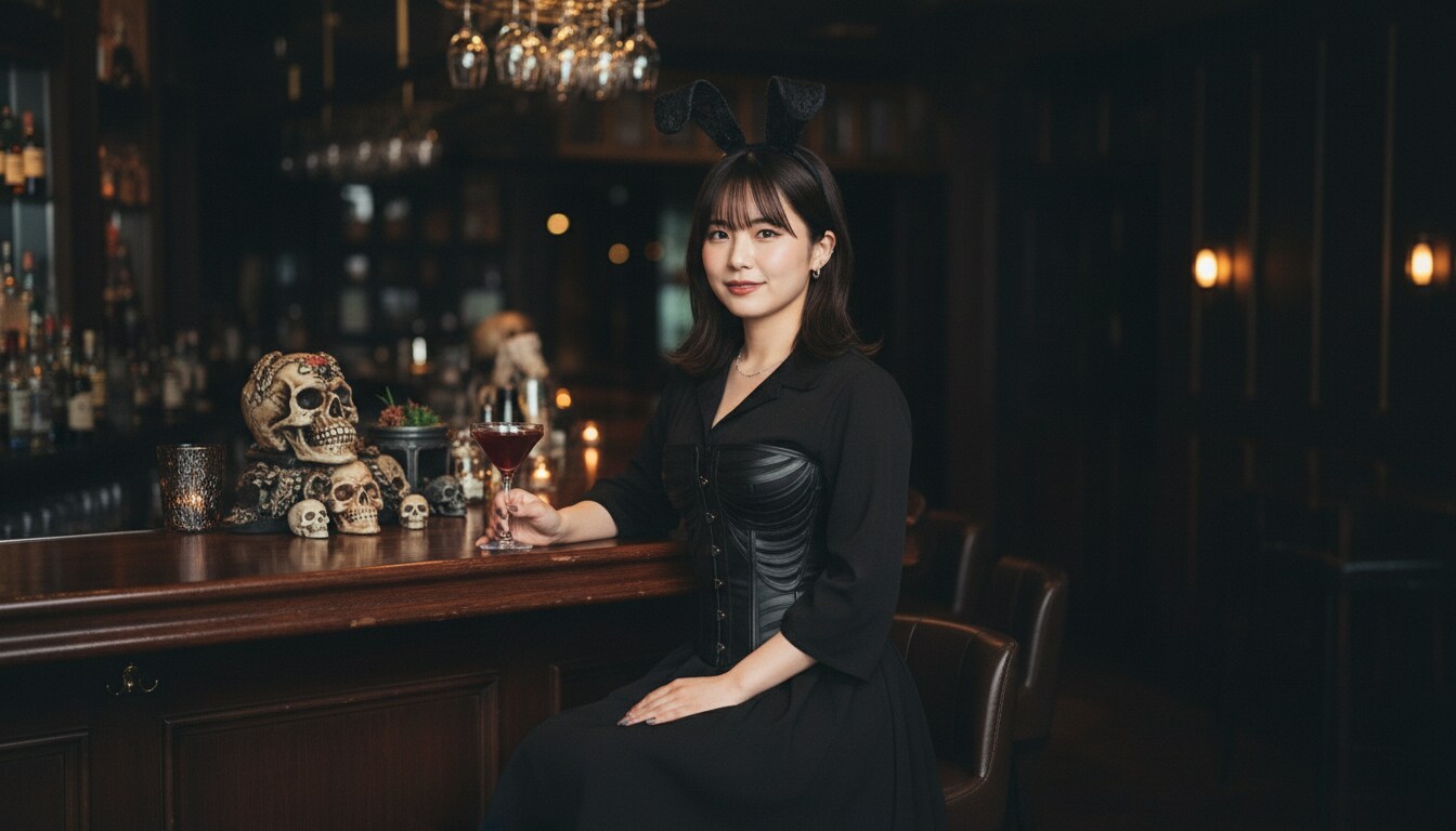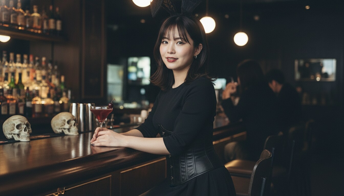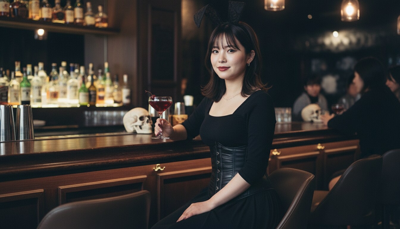「このダークでキュートな感じ、今夜のラウンジにぴったりでしょ?」
