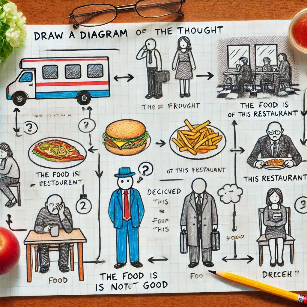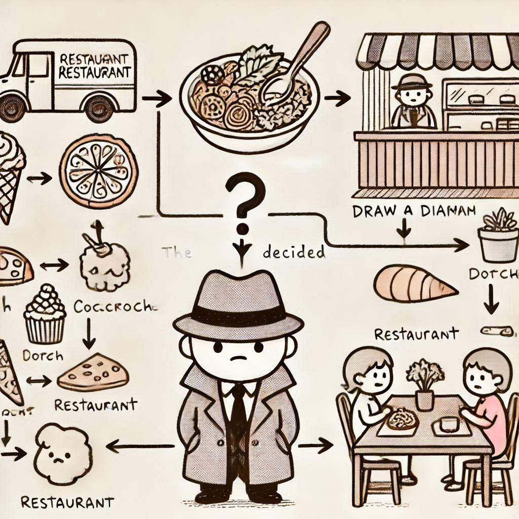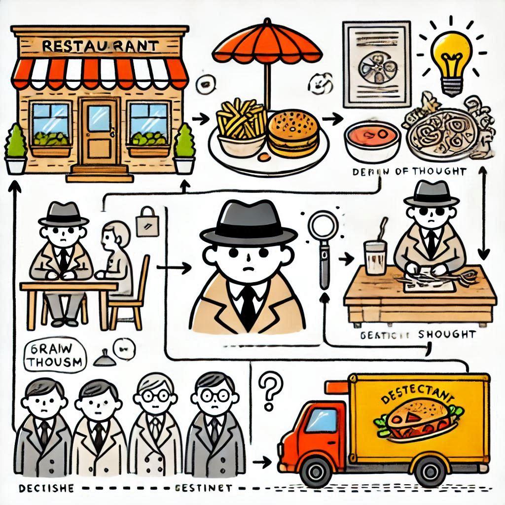 名探偵がこのレストランの料理は不味いと判断した思考の流れを図に書いて