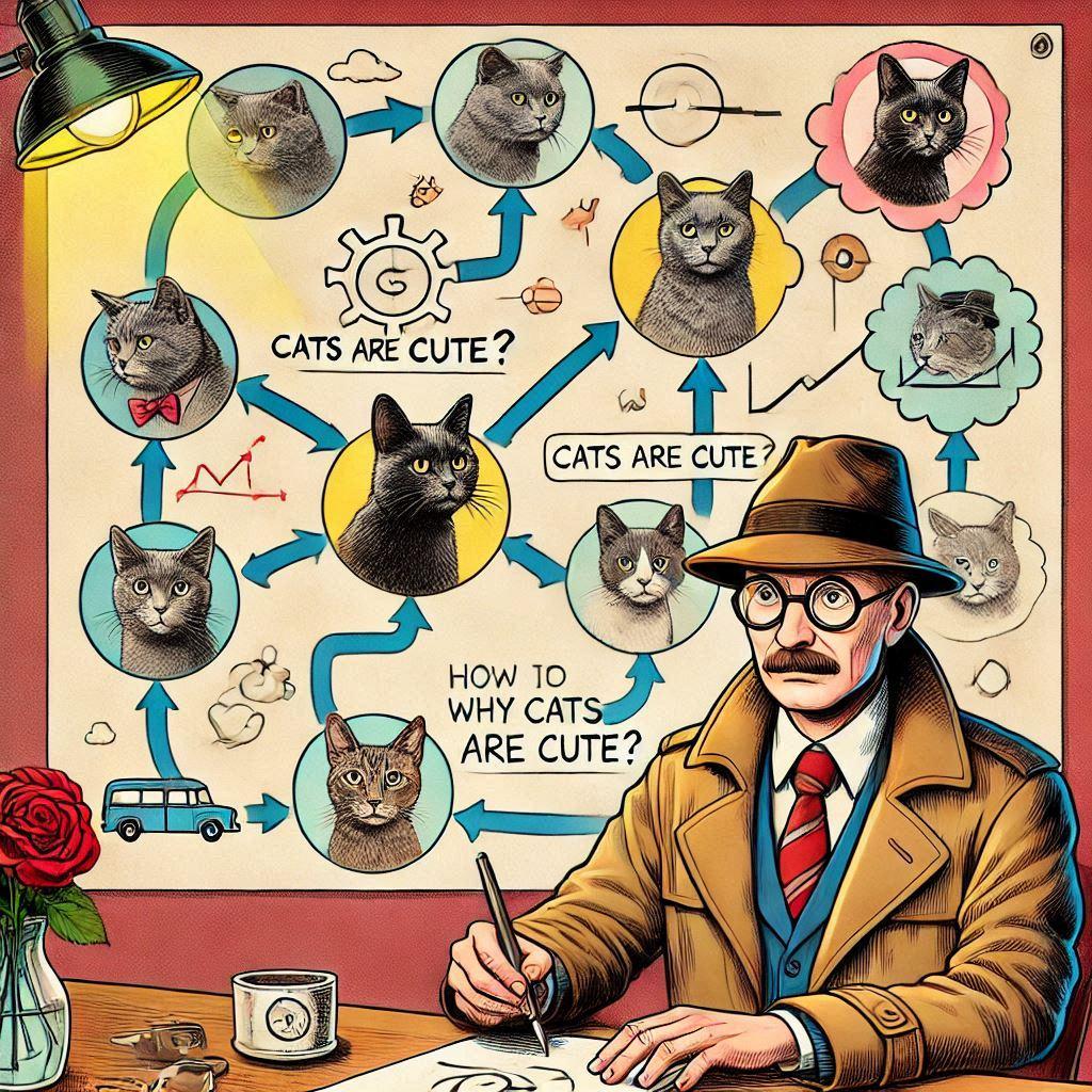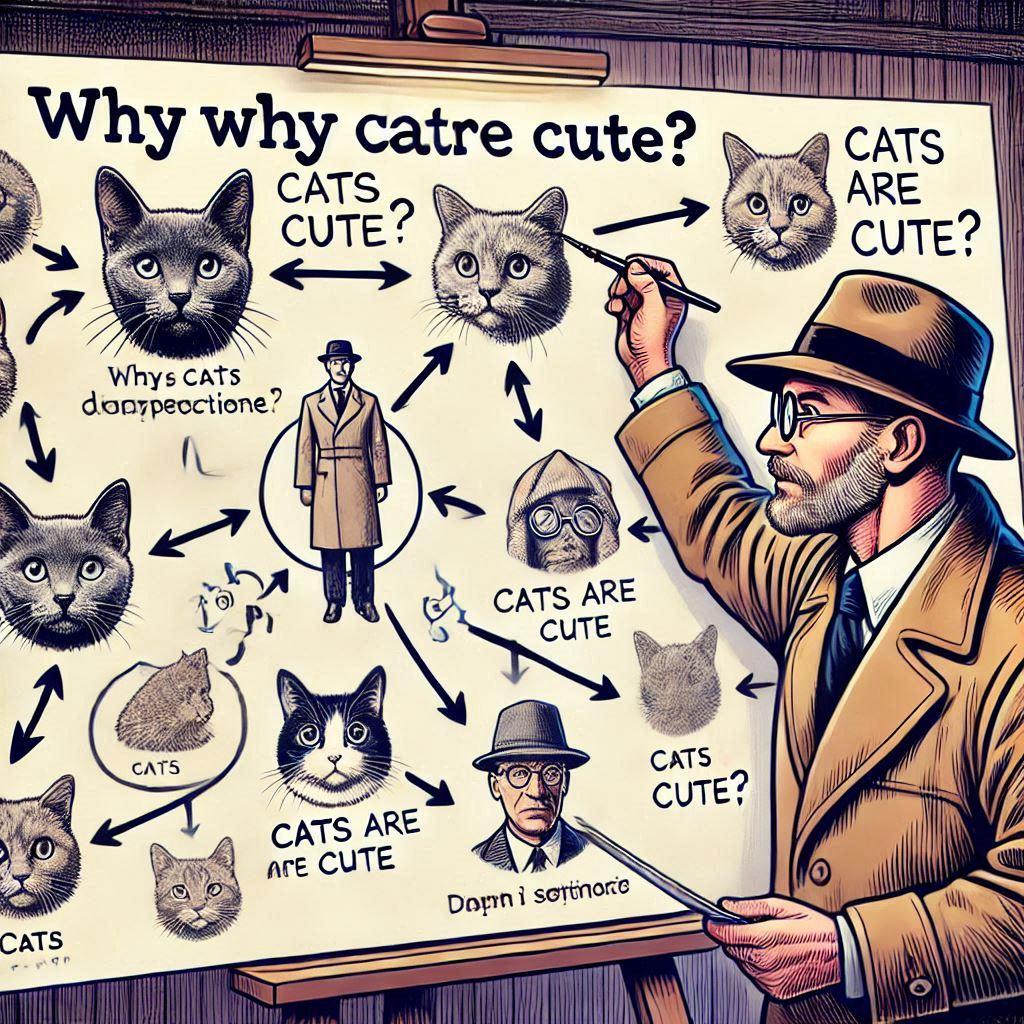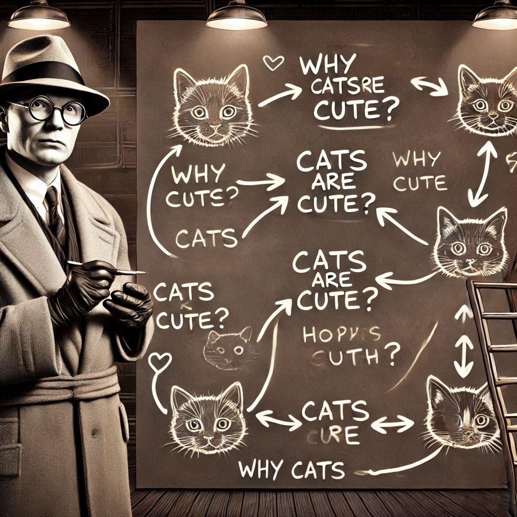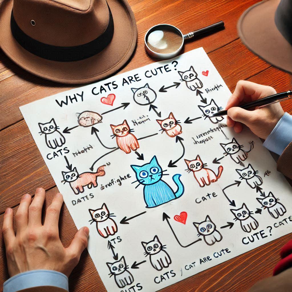 名探偵がどうして猫様は可愛いのかとの思考の流れを図に書いて