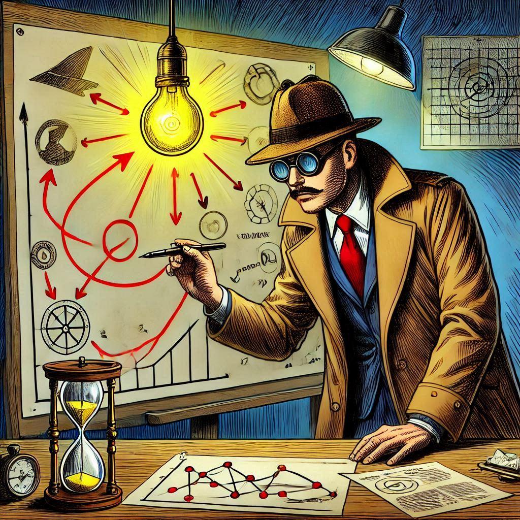 名探偵が光り輝く黄金の玉専門の怪盗の特定への思考の流れを図に書いて