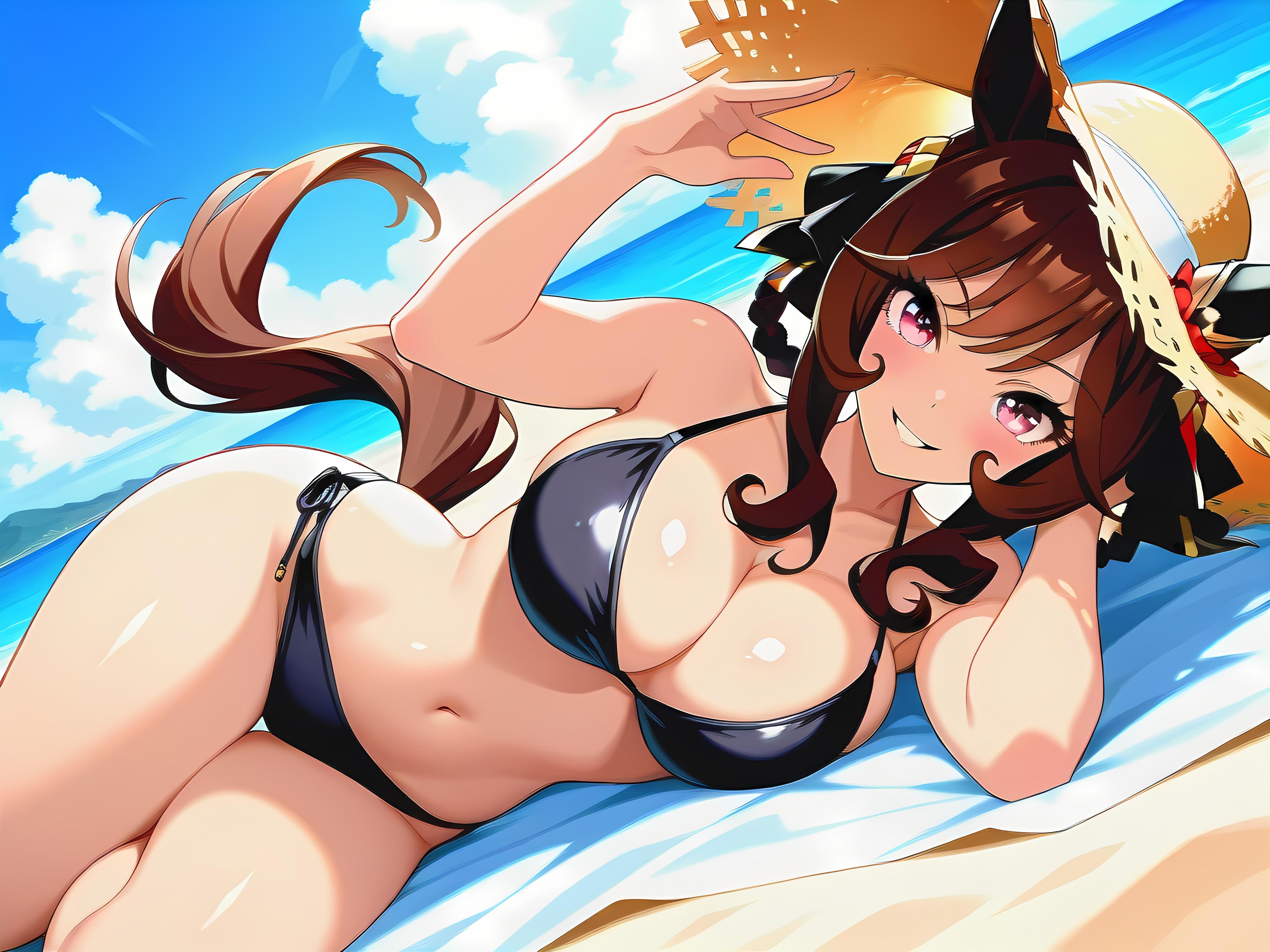 さ、私の身体にサンオイルを塗ってくださいな、乙女の柔肌に直射日光は天敵ですわ。