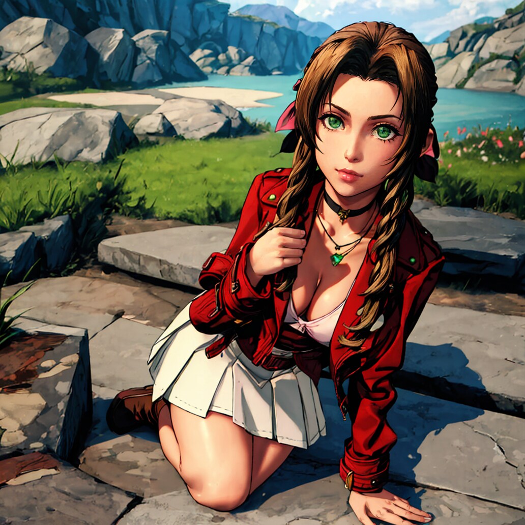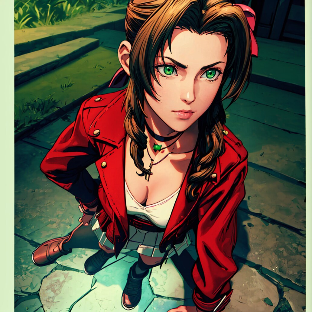 魅惑的なアニメ風イラストで再現!FF7のエアリスと彼女のセクシーなコスチューム
