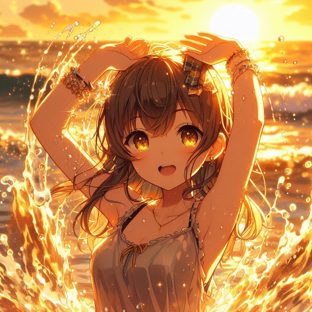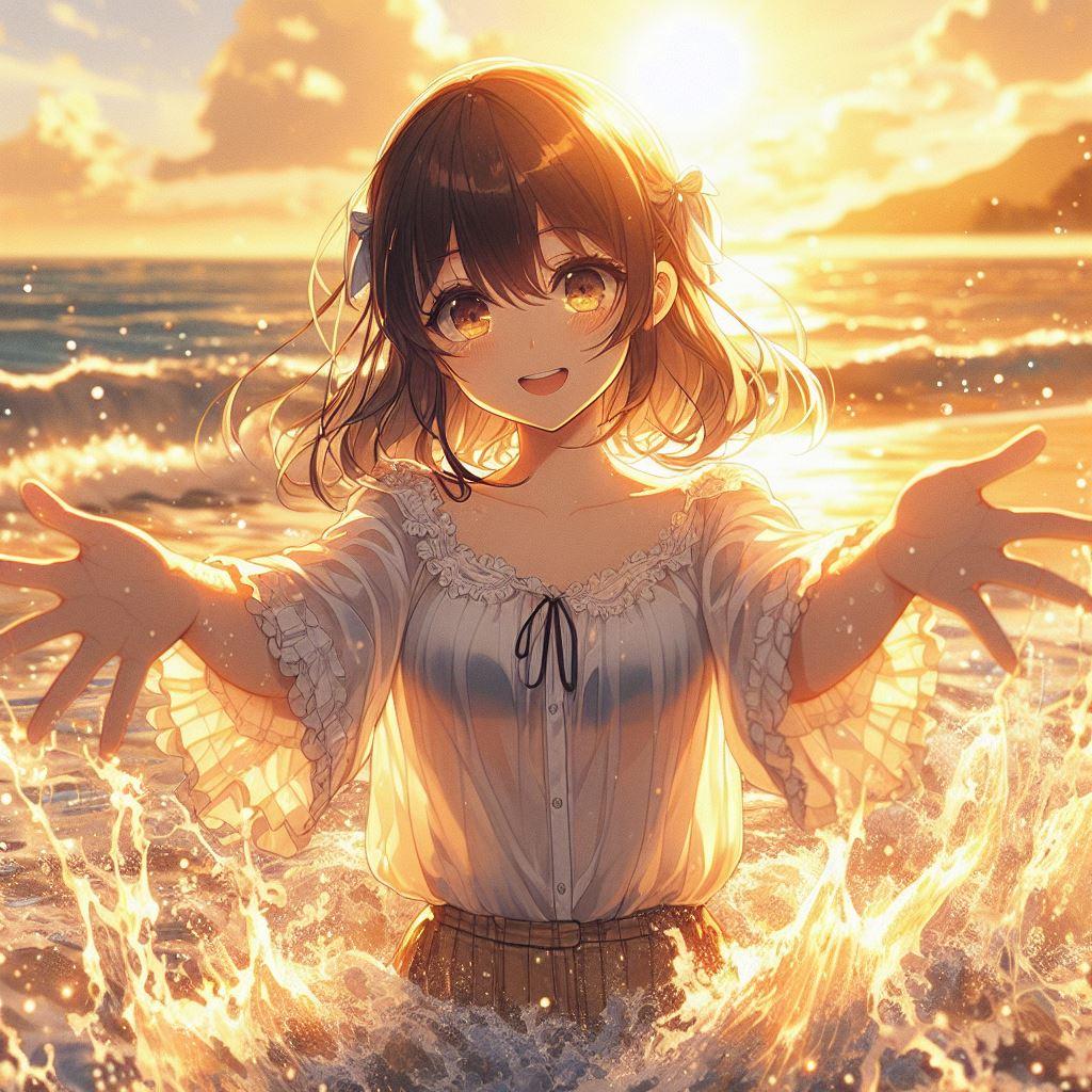 夕暮れまで彼女といっしょに水遊び