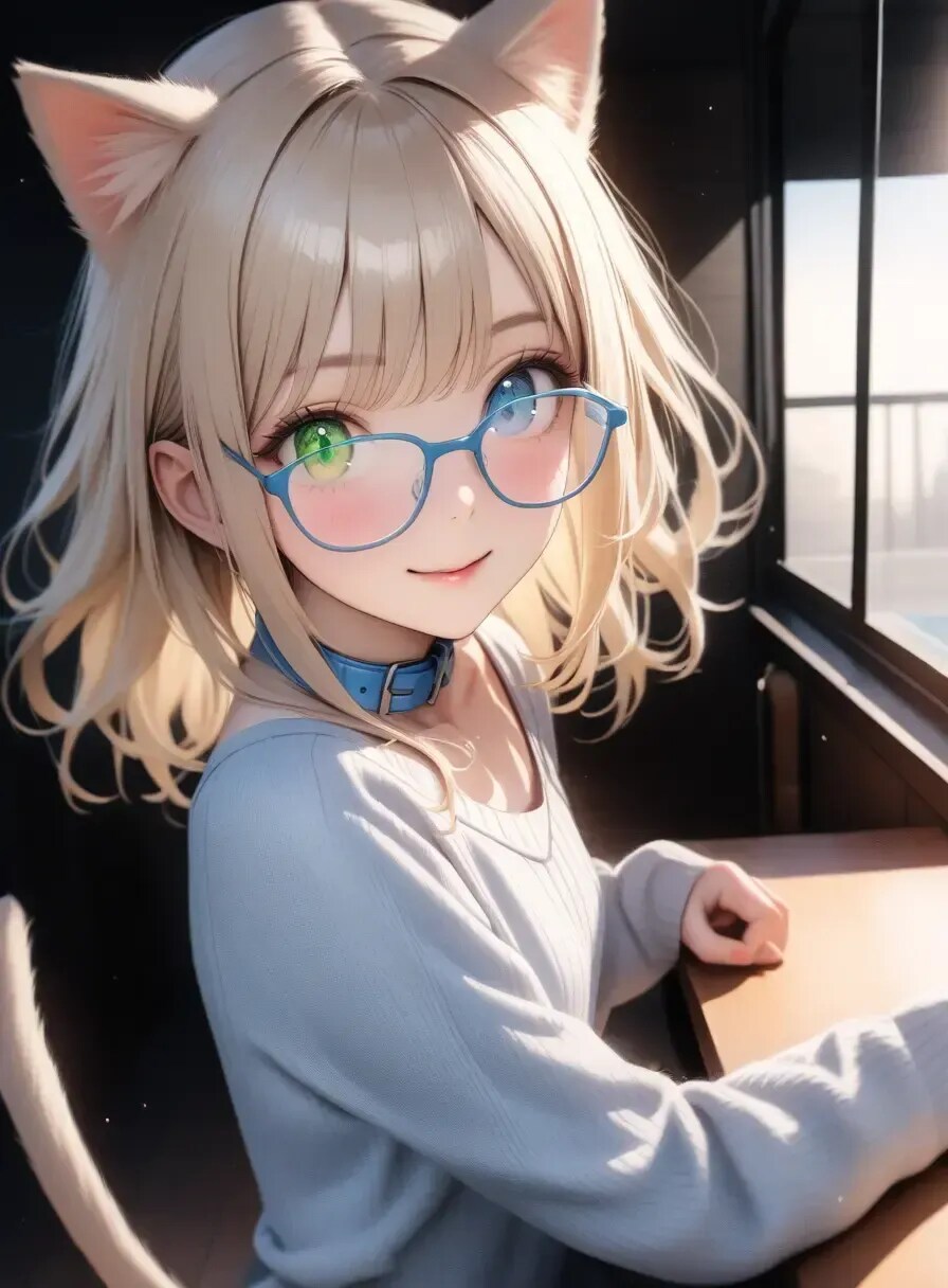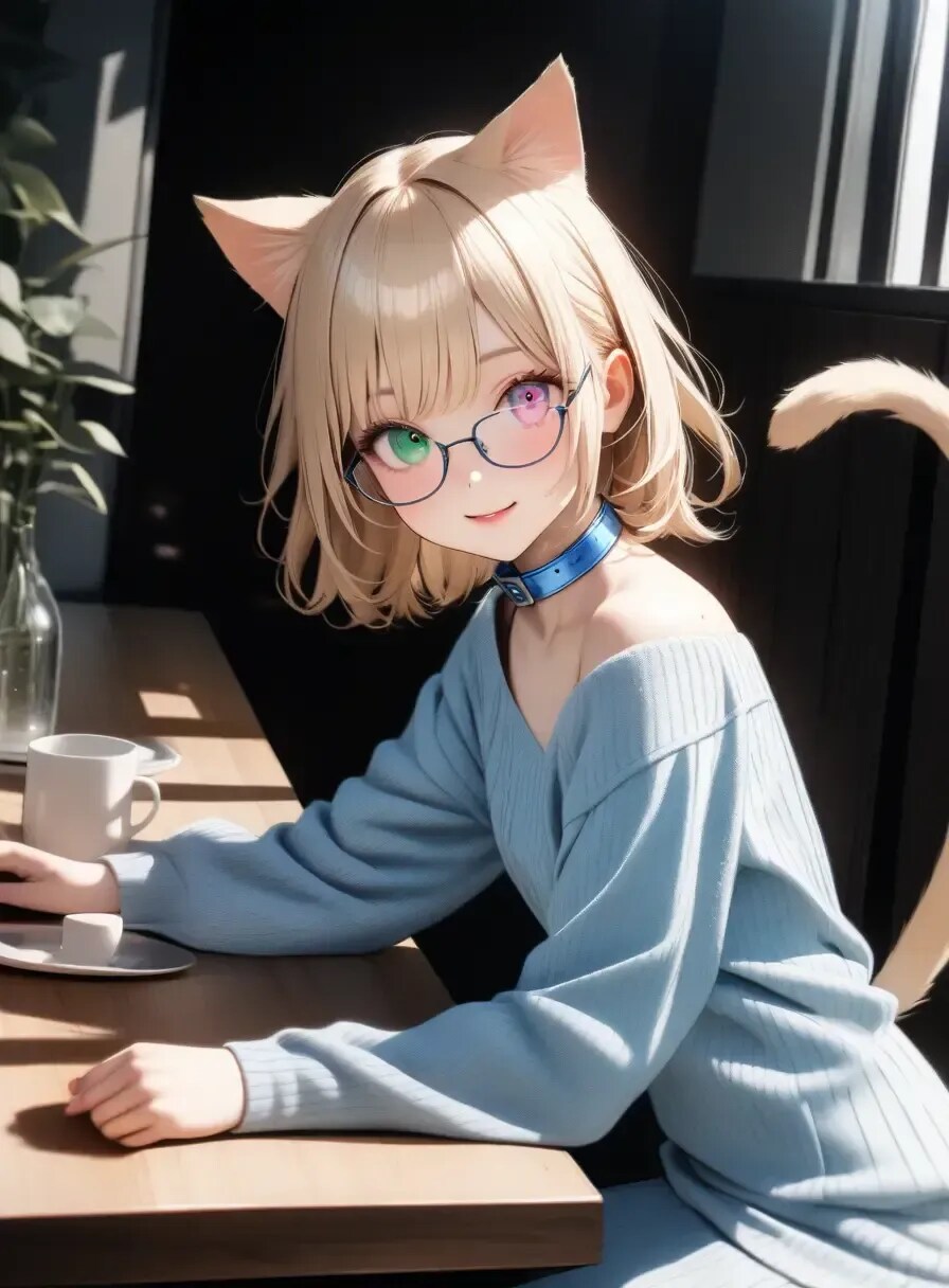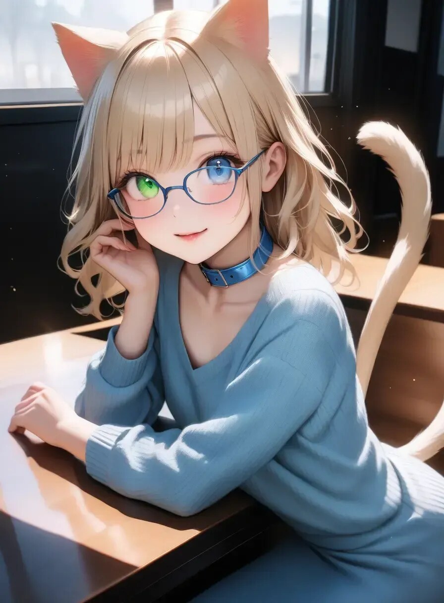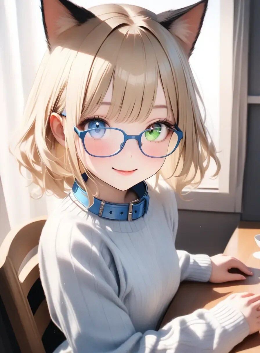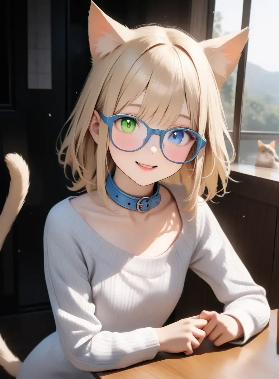 青と緑のオッドアイ、パステルブルーの首輪がチャームポイント!