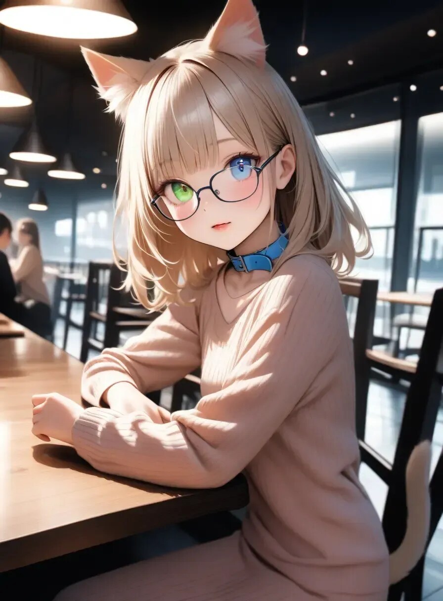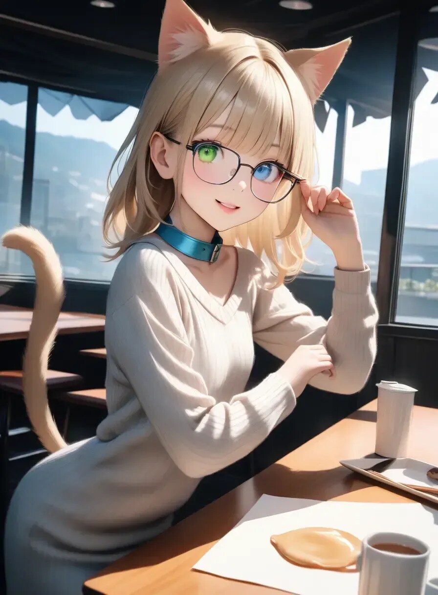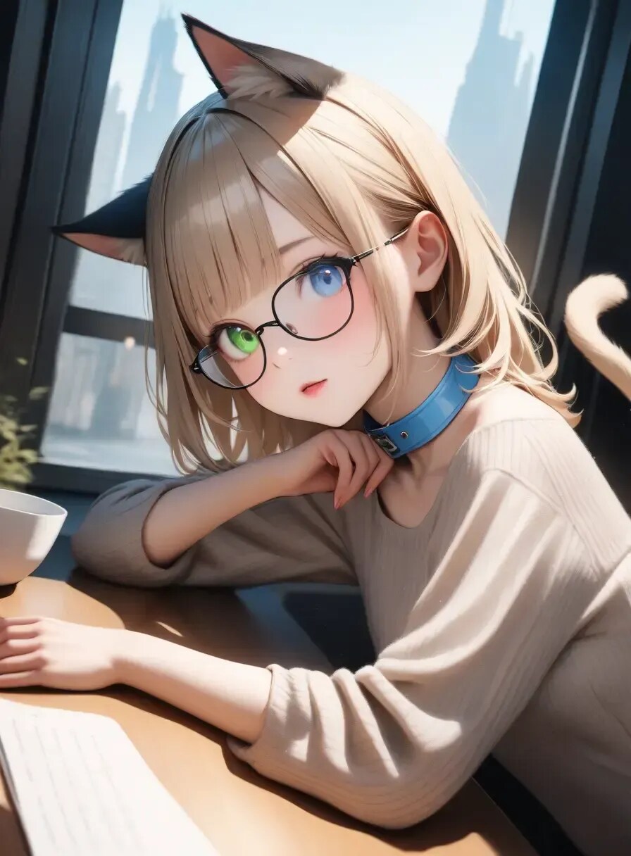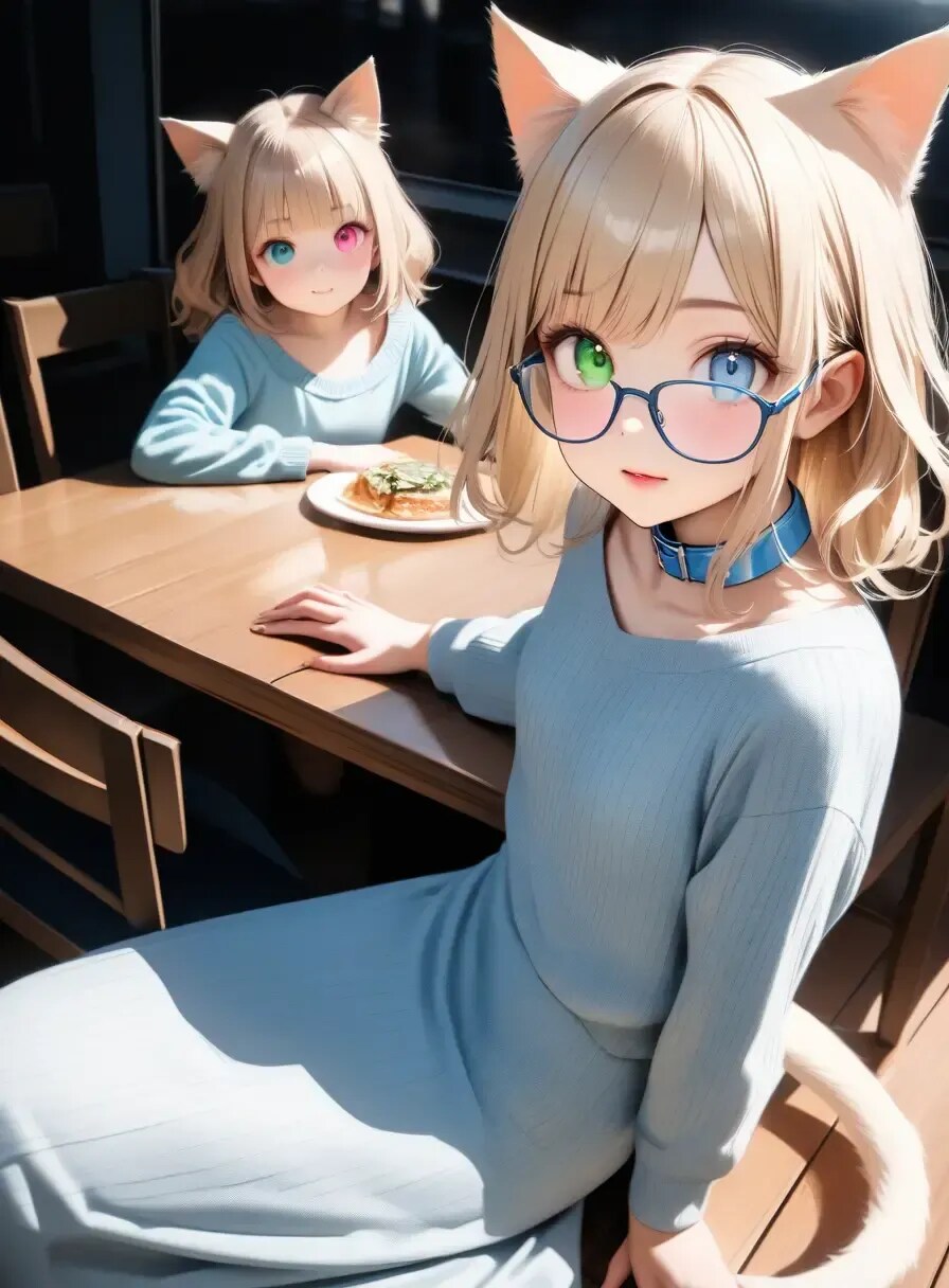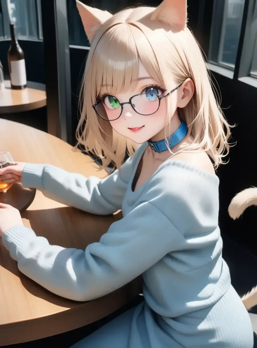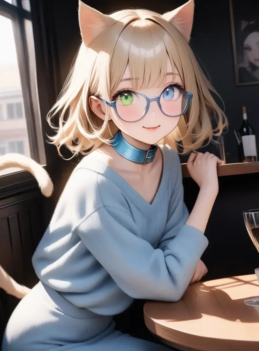 青と緑のオッドアイ、パステルブルーの首輪がチャームポイント!