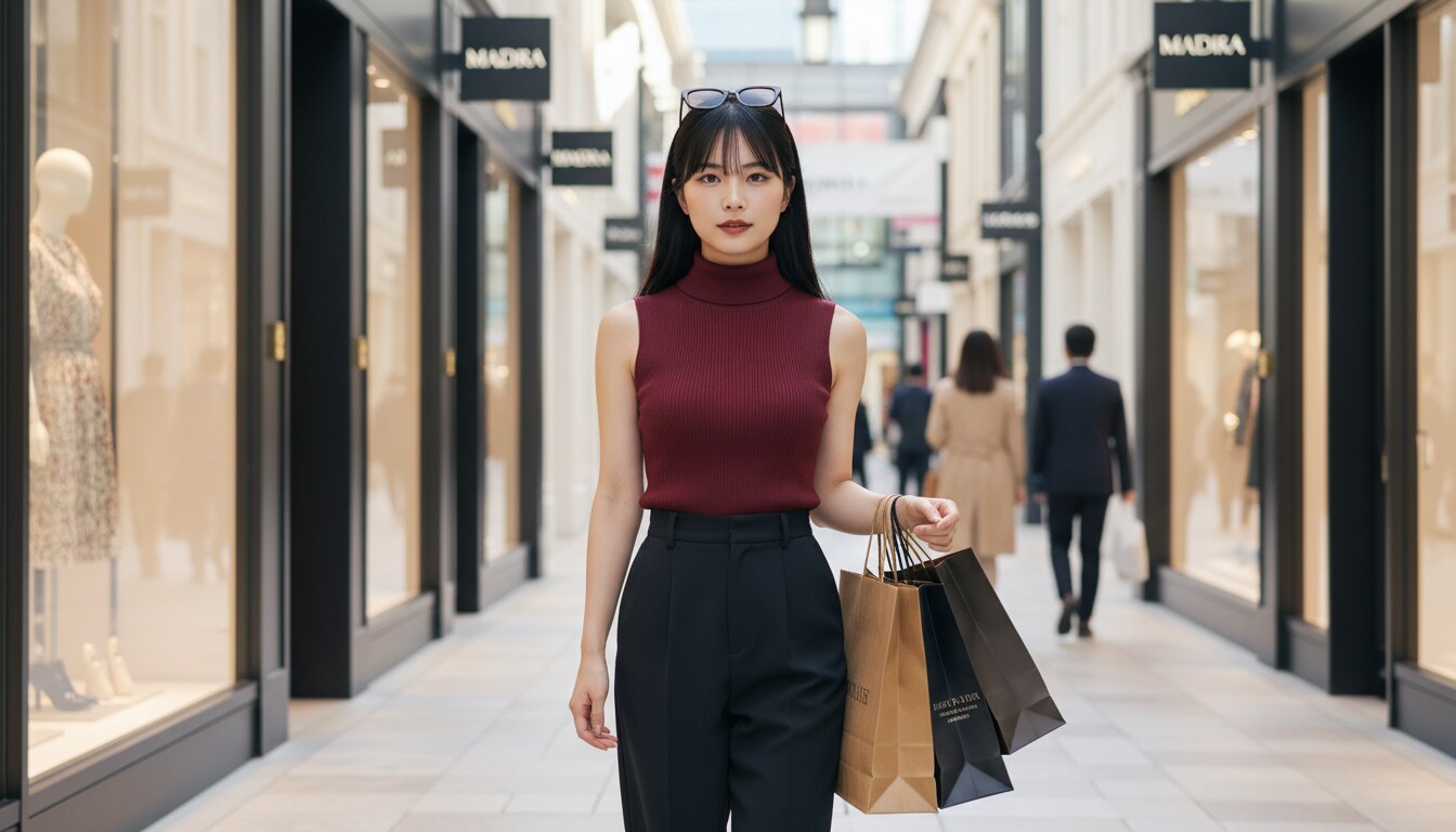 「良い買い物ができたわ。…この色のニット、秋っぽくて素敵でしょ?」