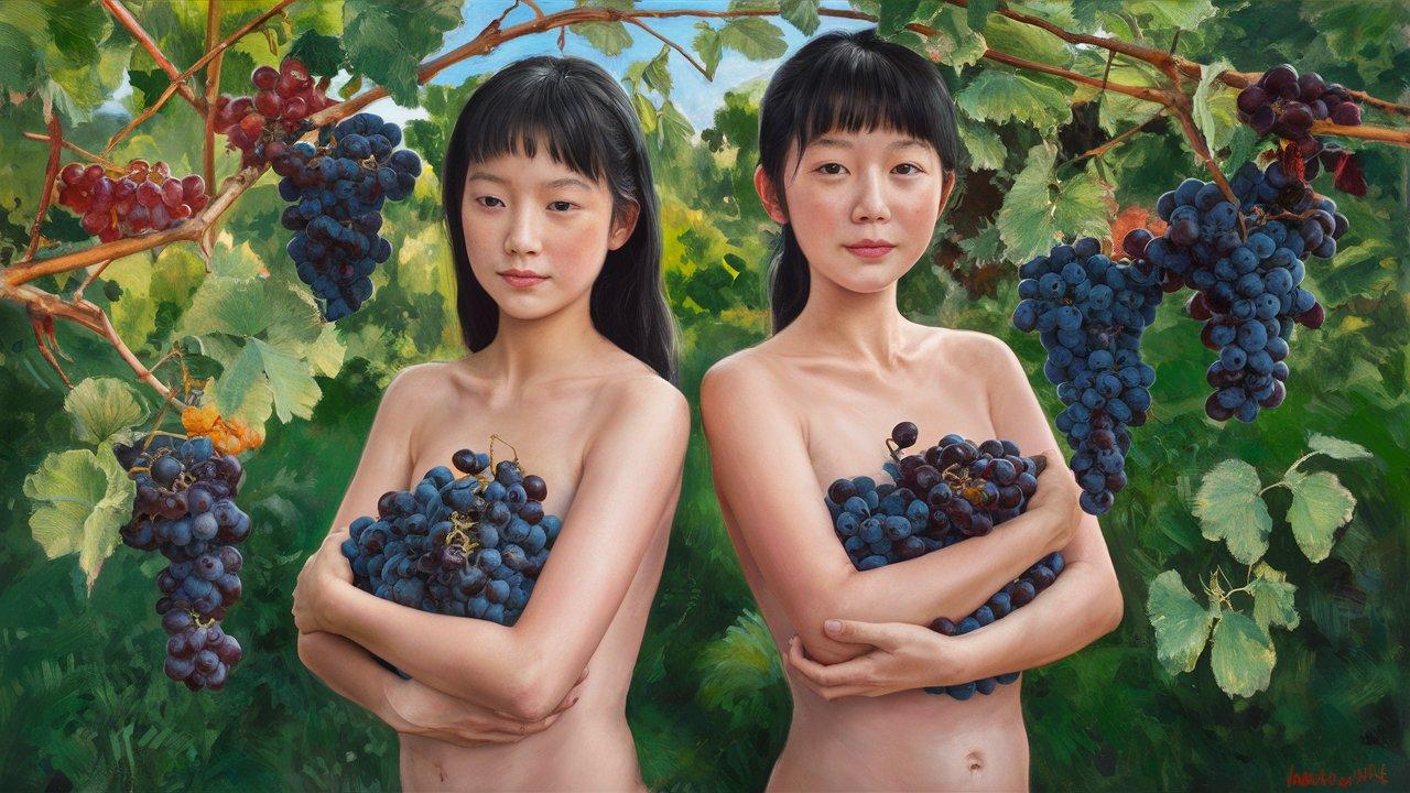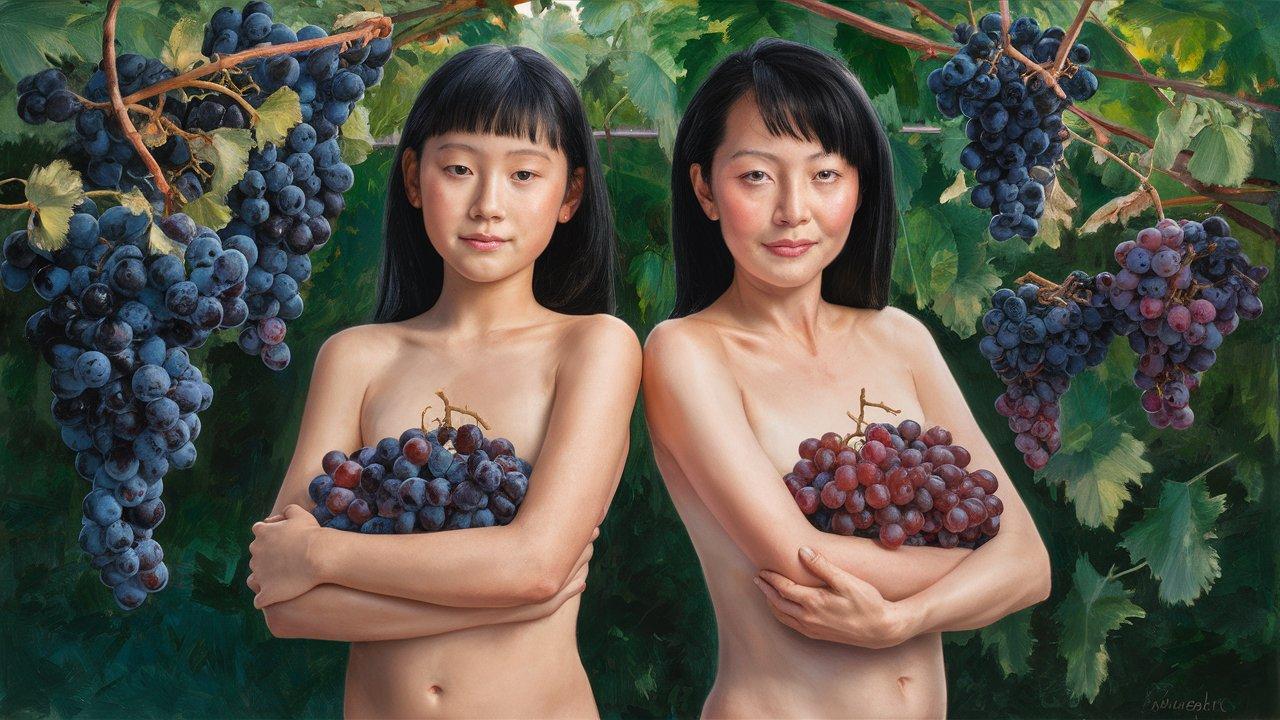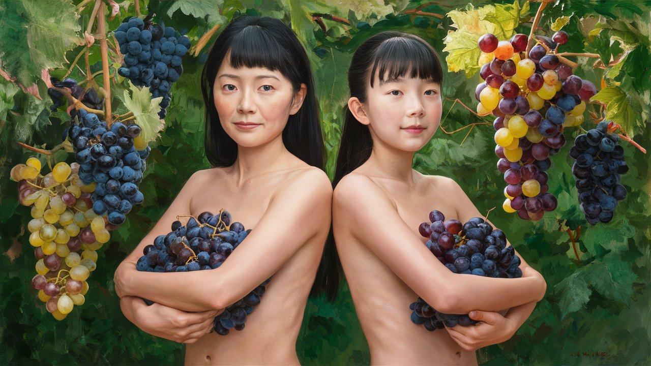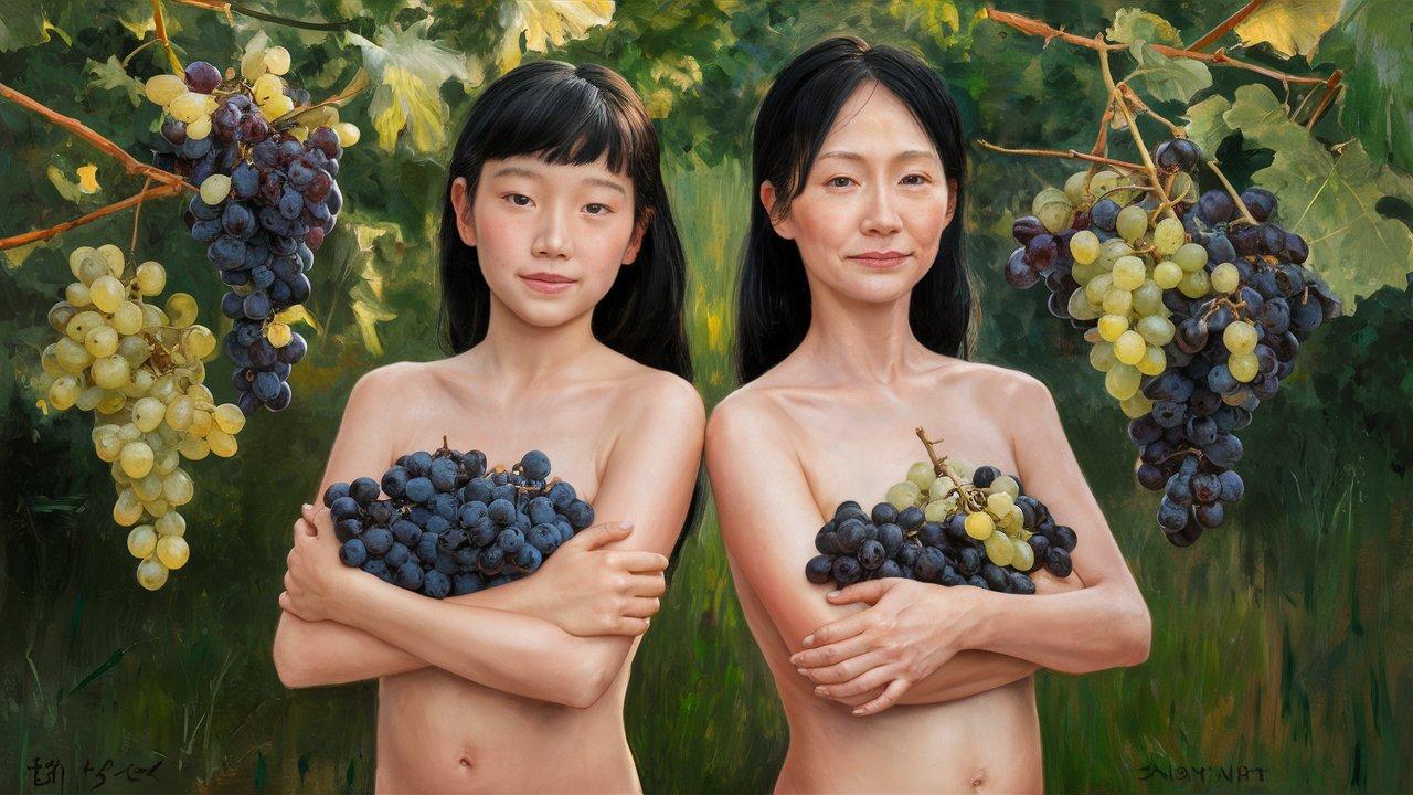ぶどう畑の母と娘