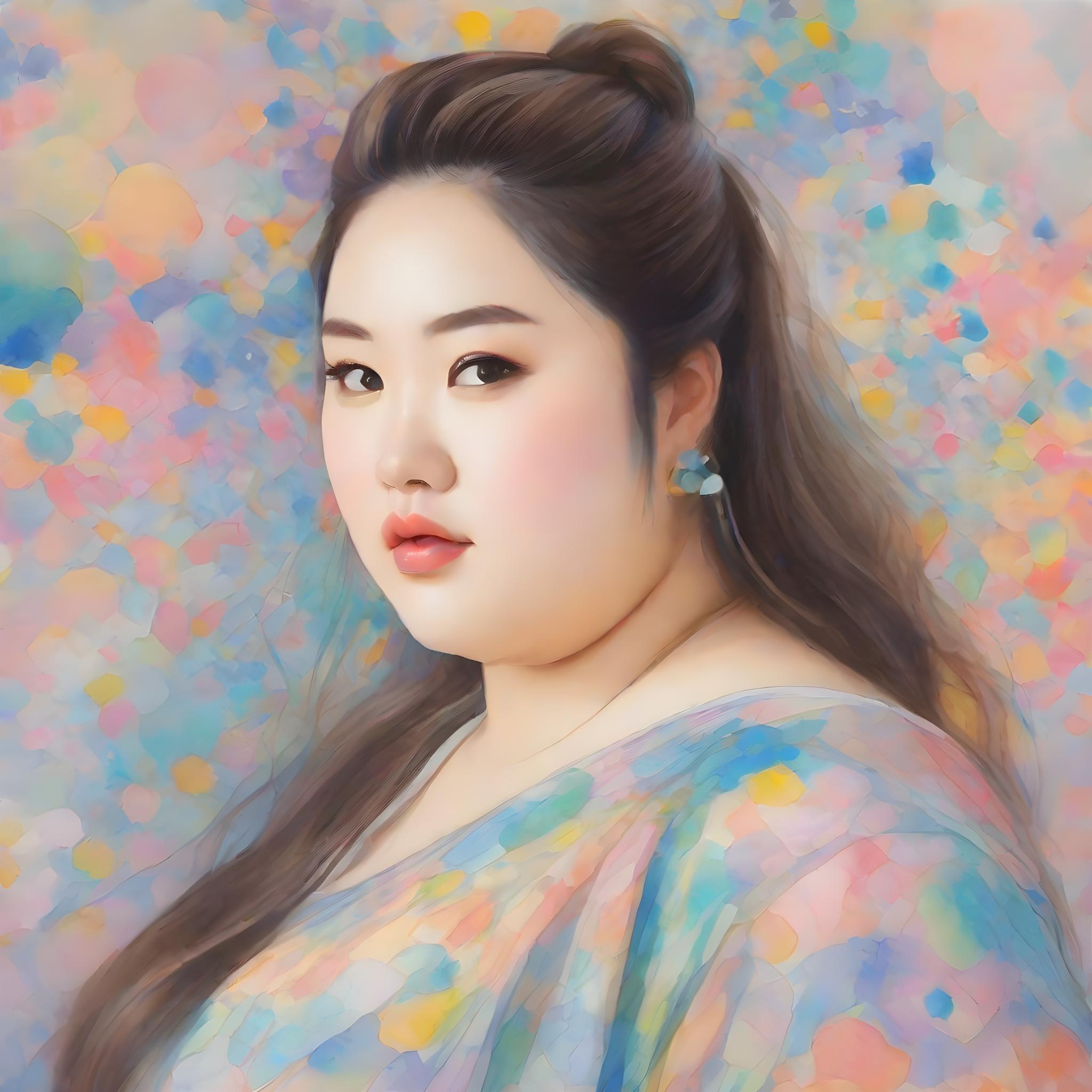 水彩画×線画✖︎パステル×抽象画=ぽっちゃり女子