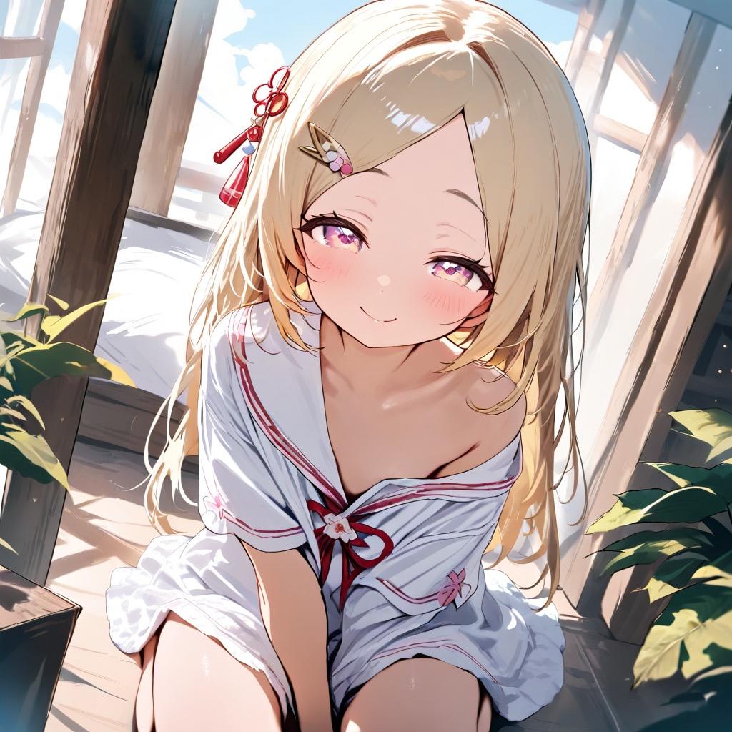 朝、リビングに入ると、そこにはセーラー服姿のチビメイドがいた。