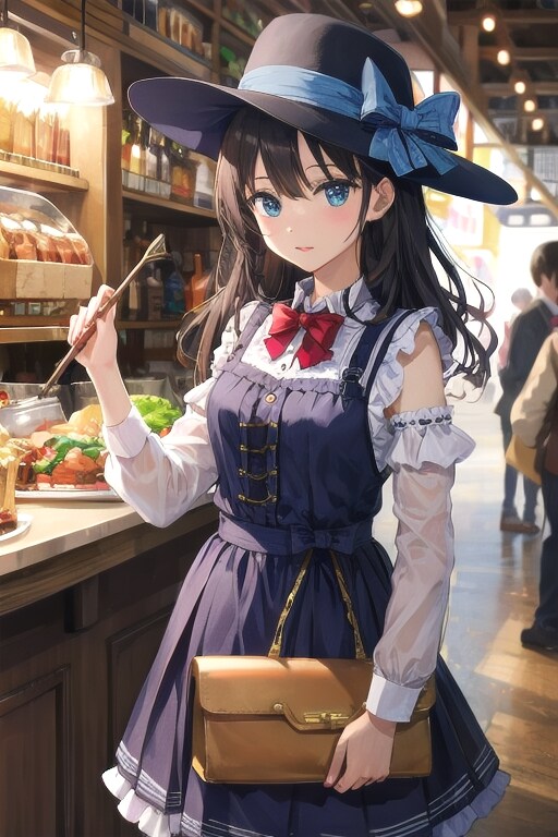 accessory, neat, young?, overall?, open?, lori, light, dark(hair), dress, tasting?, indoor, maid?, medium(hair and breasts), eat?