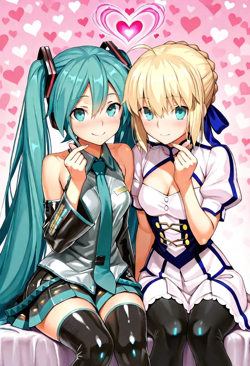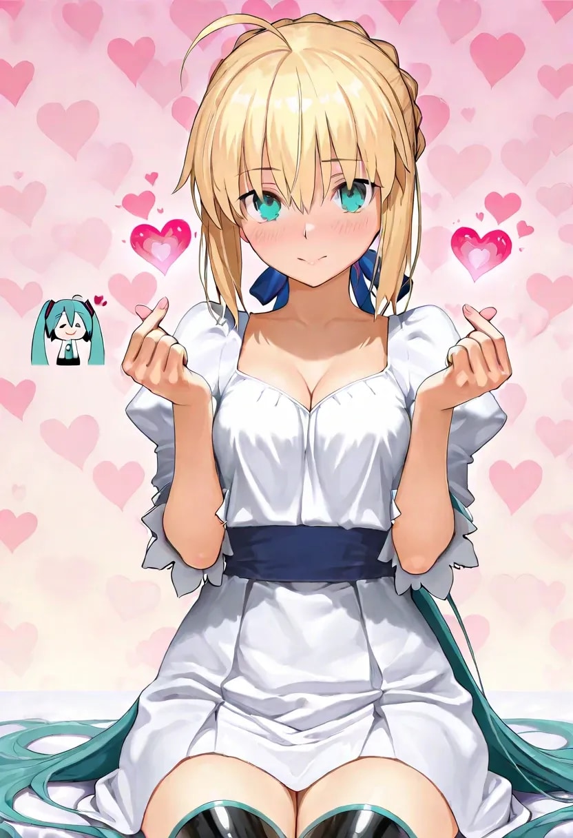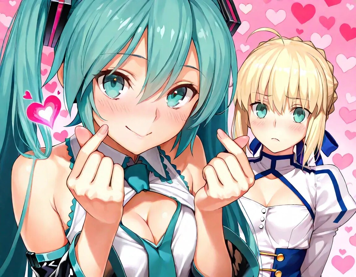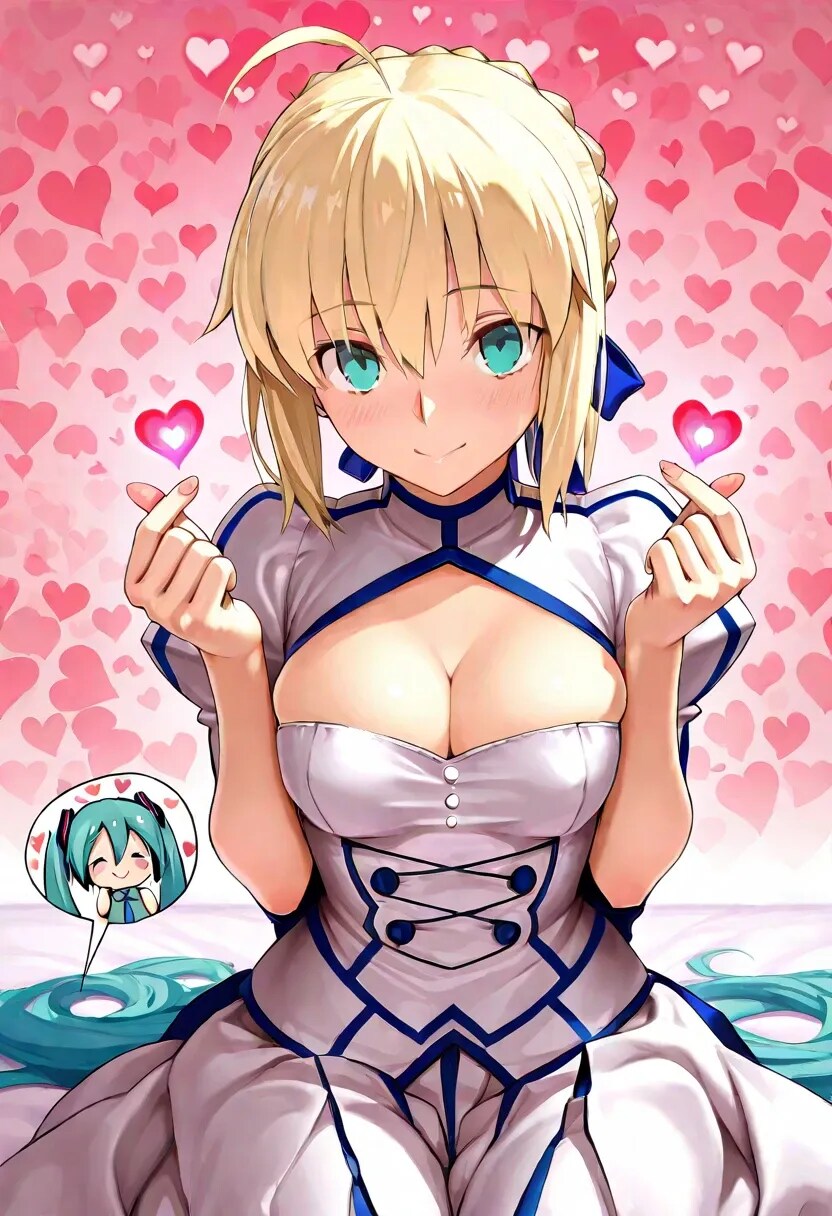 ミクとセイバーで♡フィンガーハート♡