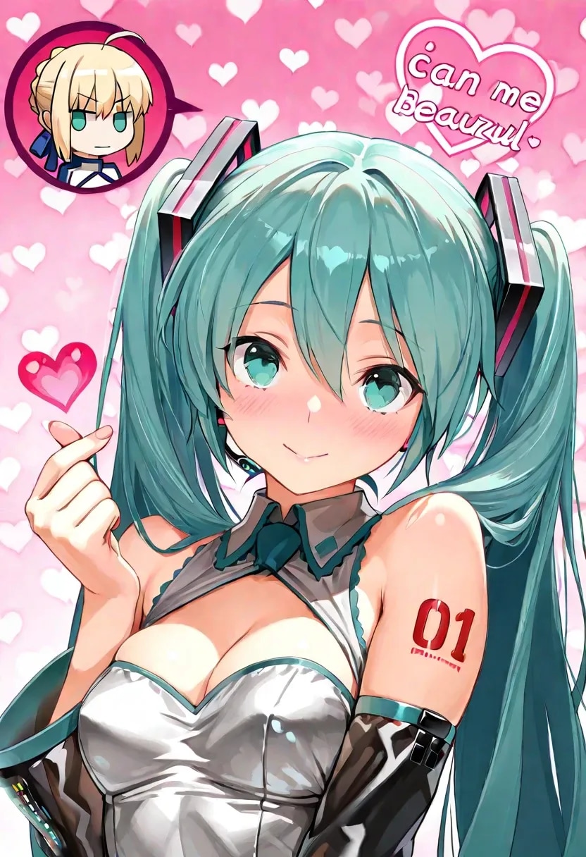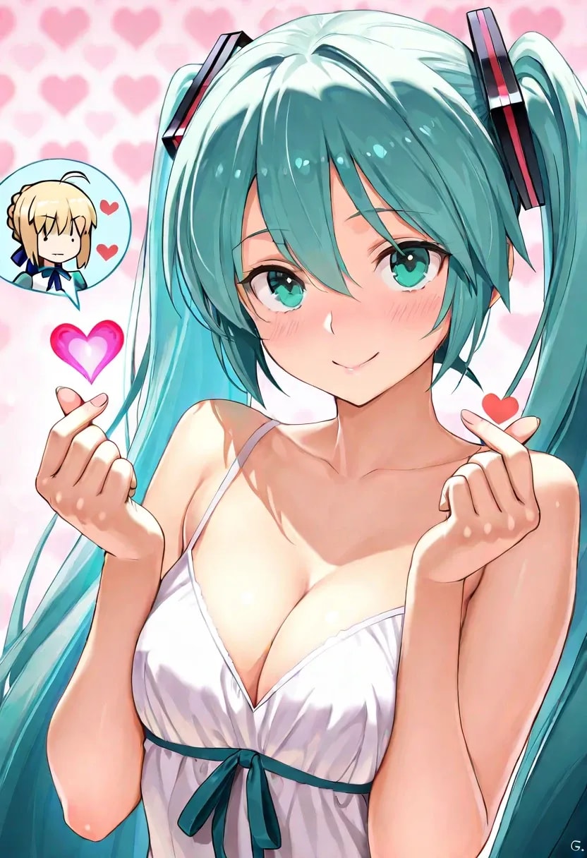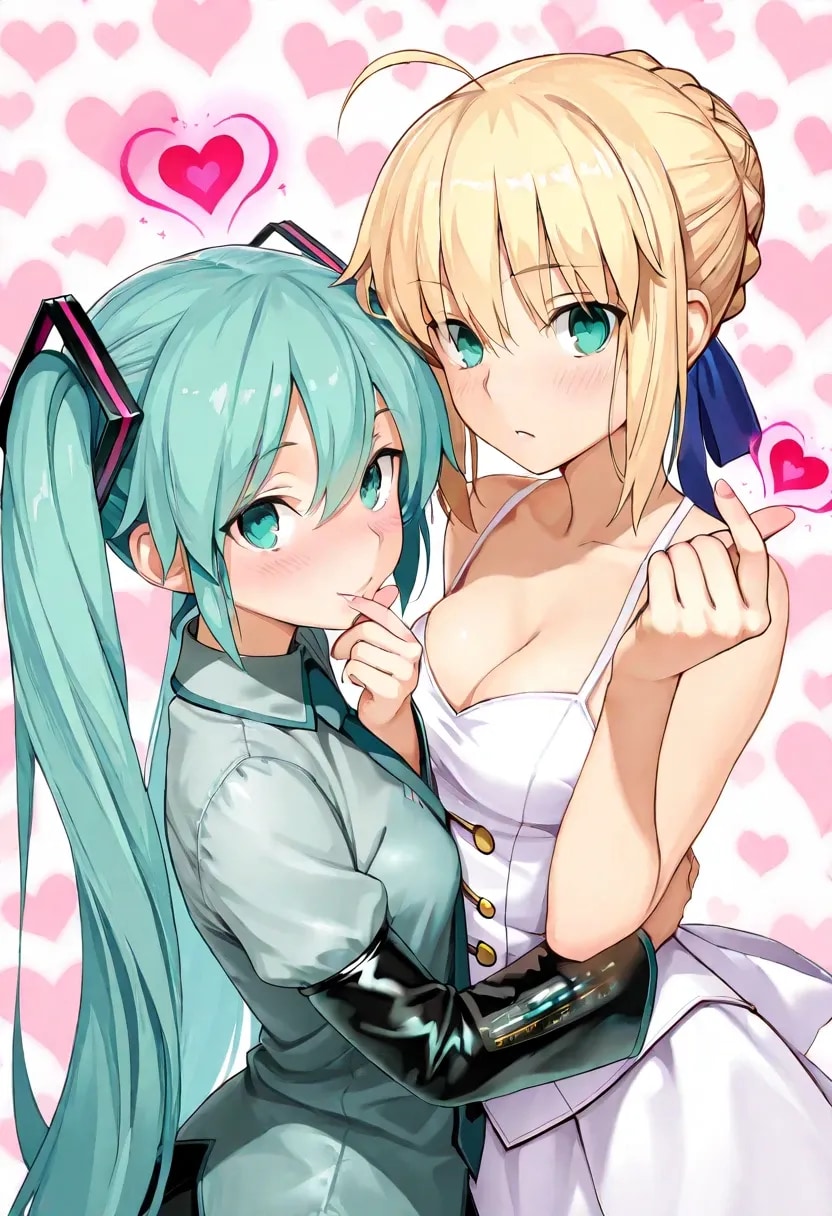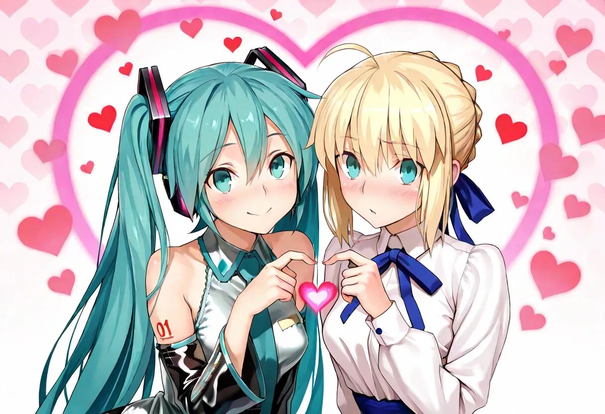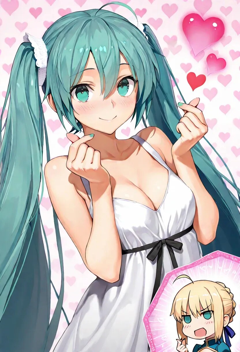 ミクとセイバーで♡フィンガーハート♡