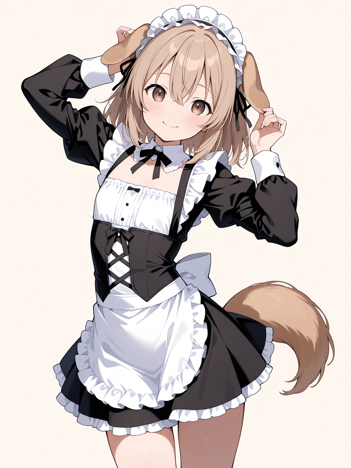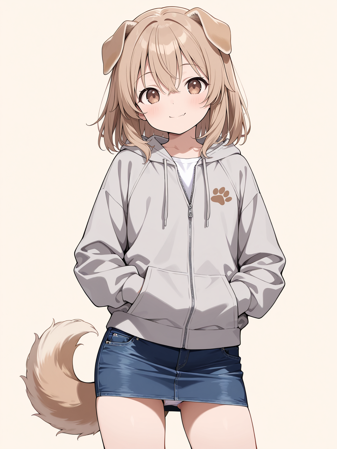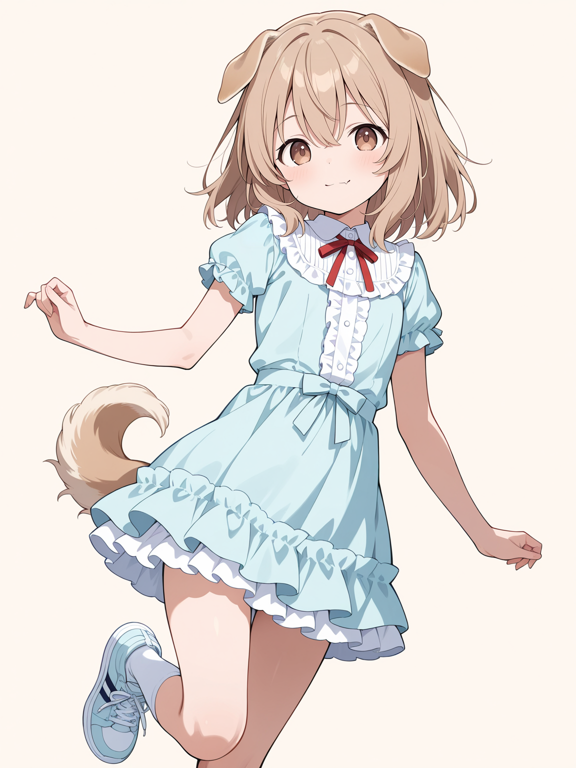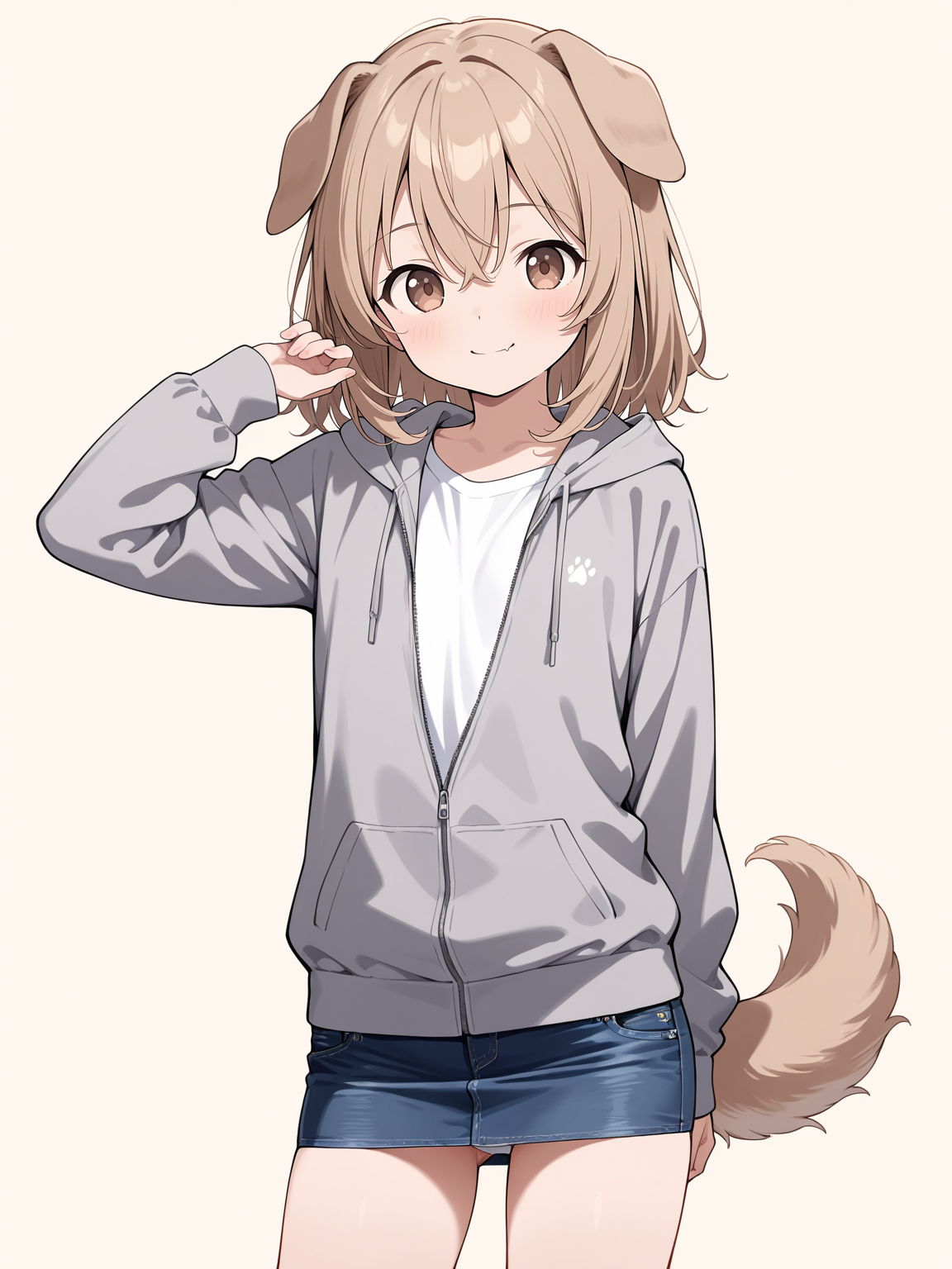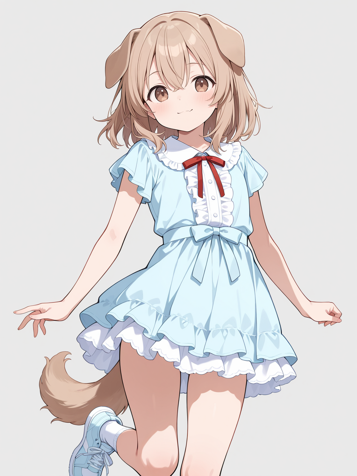 特徴:垂れた犬ミミ、犬のしっぽ、茶髪、ロリ、ツルペタ