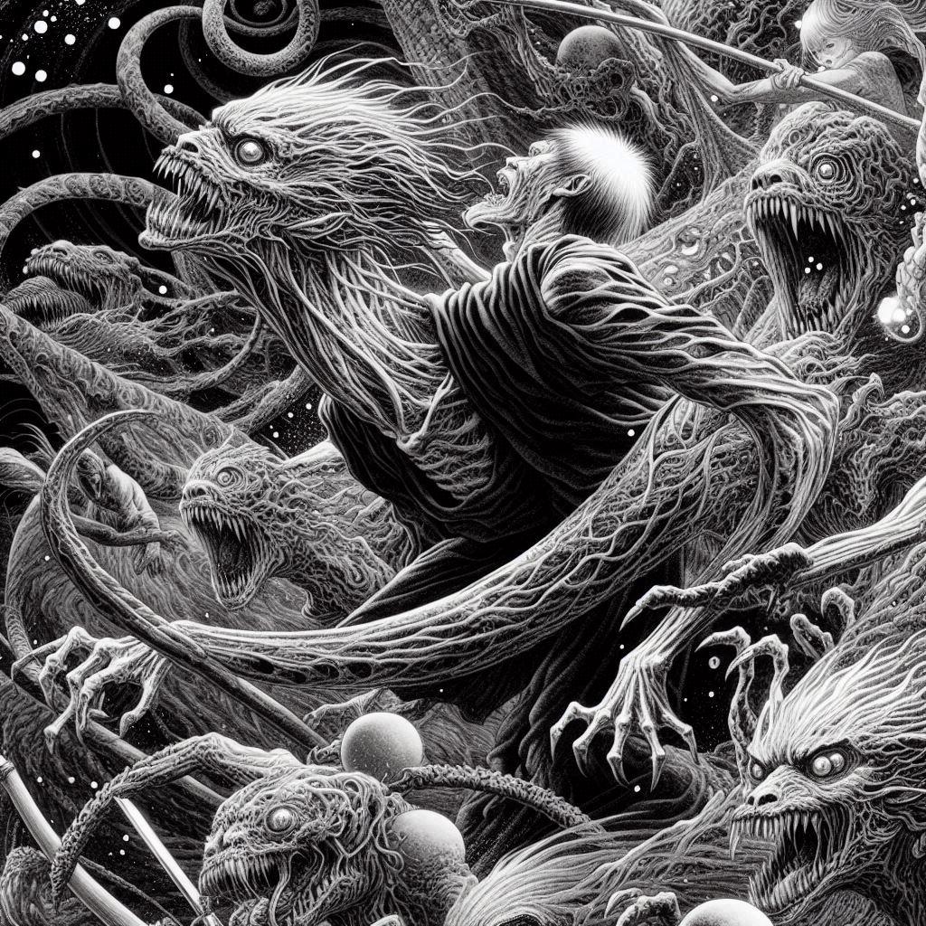 高名な修行僧が、日課の”野外座禅”に集中するあまり、魑魅魍魎の中小妖怪に五体を噛みつかれも気づかず・・・💦最後は、それなりの力を持った妖怪に中小妖怪ごと”ぱっくんちょ!”😱💦・・・。