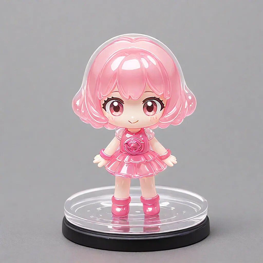 透明感のある「ももほうくん」のフィギュアは、クリア素材の輝きと柔らかいピンク色が調和して、本当に美しい仕上がりになっていますね。🍑✨